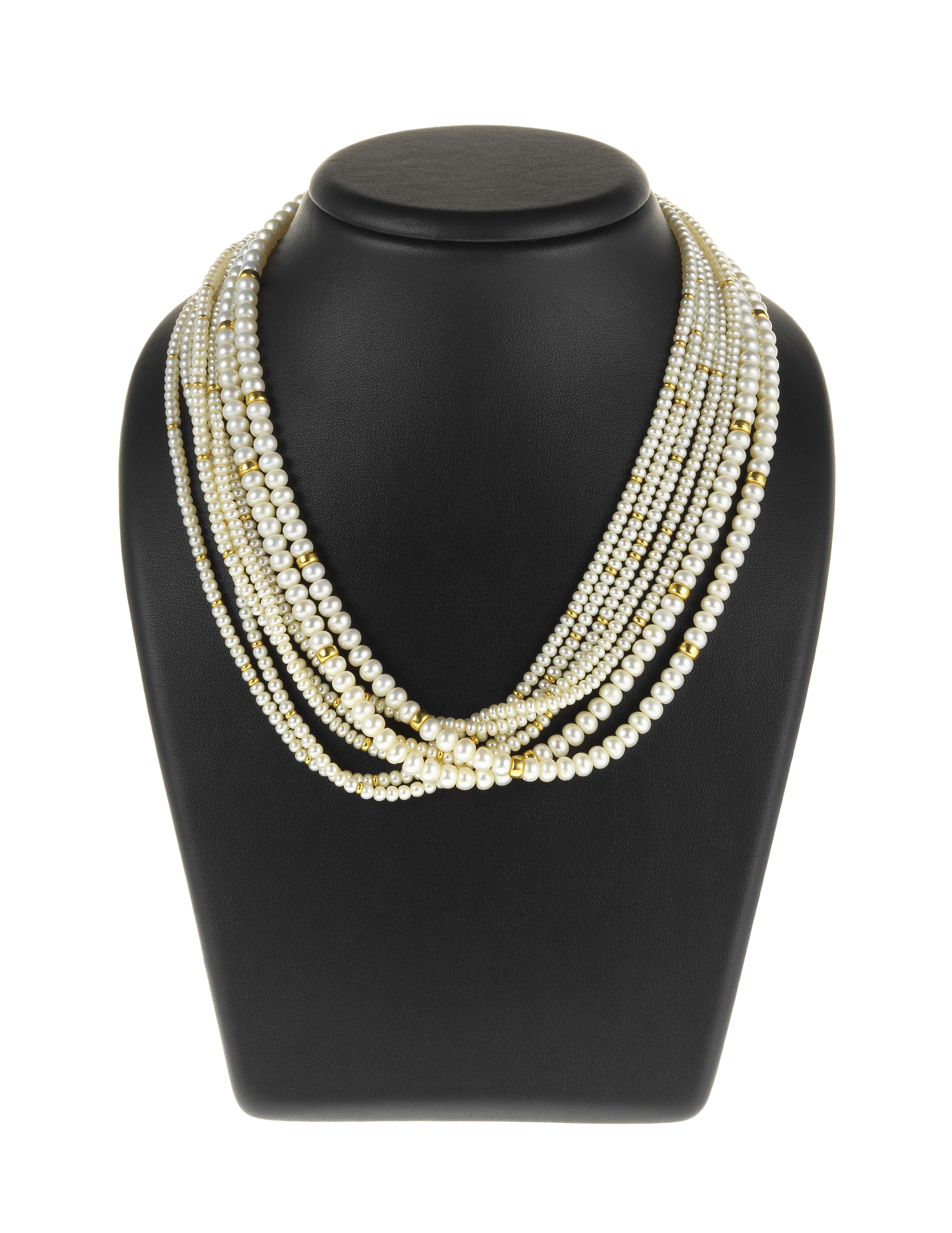 144. Collier composé de perles et de perlettes d'or en alternance ret...