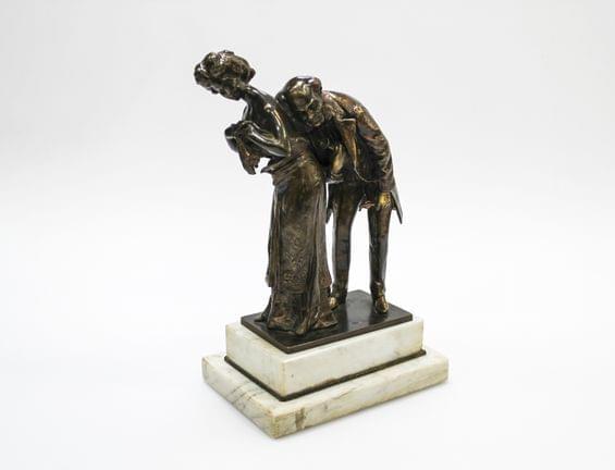 Jeune femme et médecin, bronze patine médaille et marbre blanc, H 26 cm