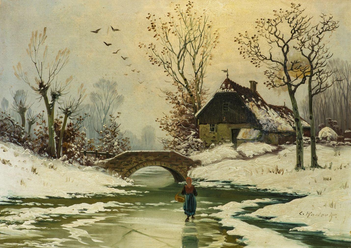 Rivière gelée, huile sur toile, 46x64 cm