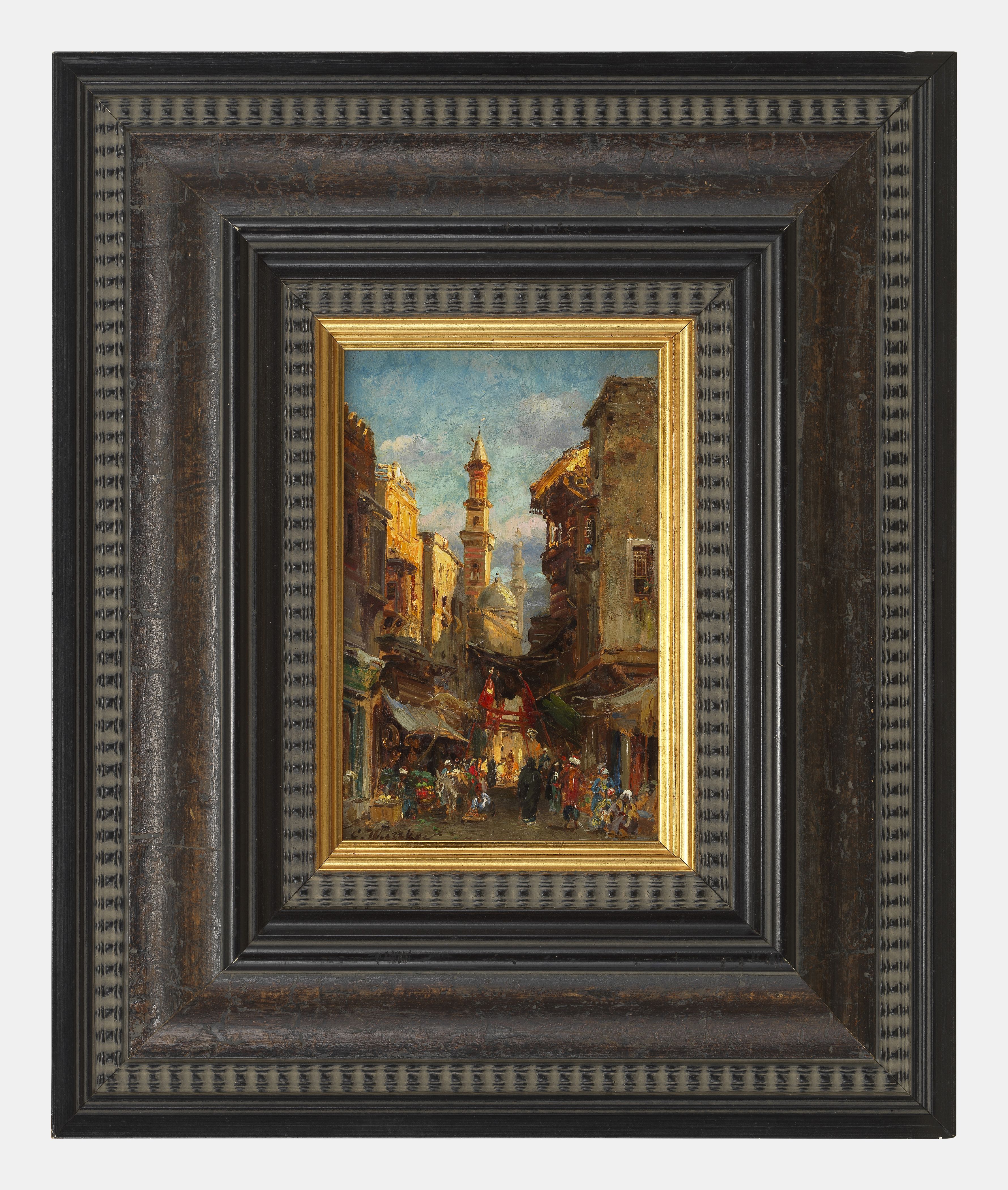 Vue du Caire, huile sur panneau, signée, 23x13 cm