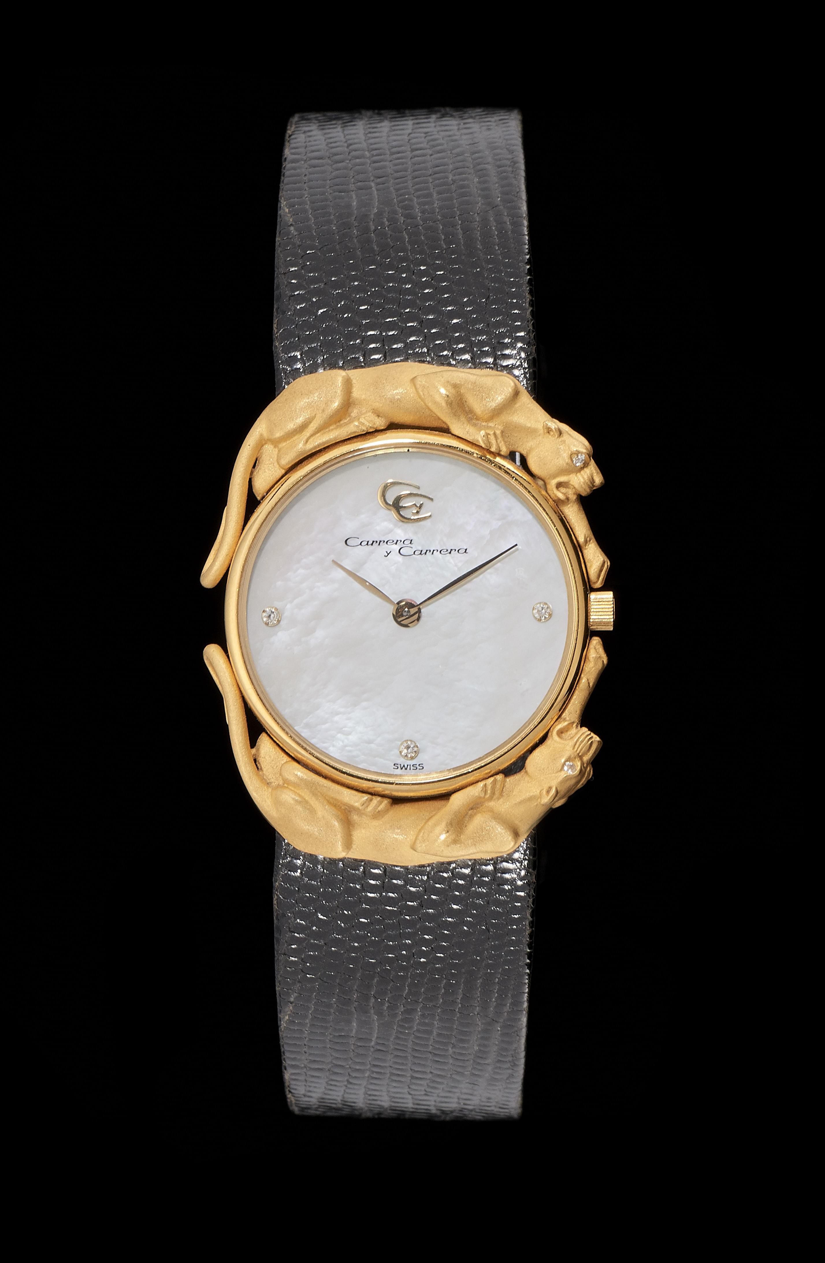 Cadran gris guilloché, aiguilles dorées, chiffres romains bleu c...