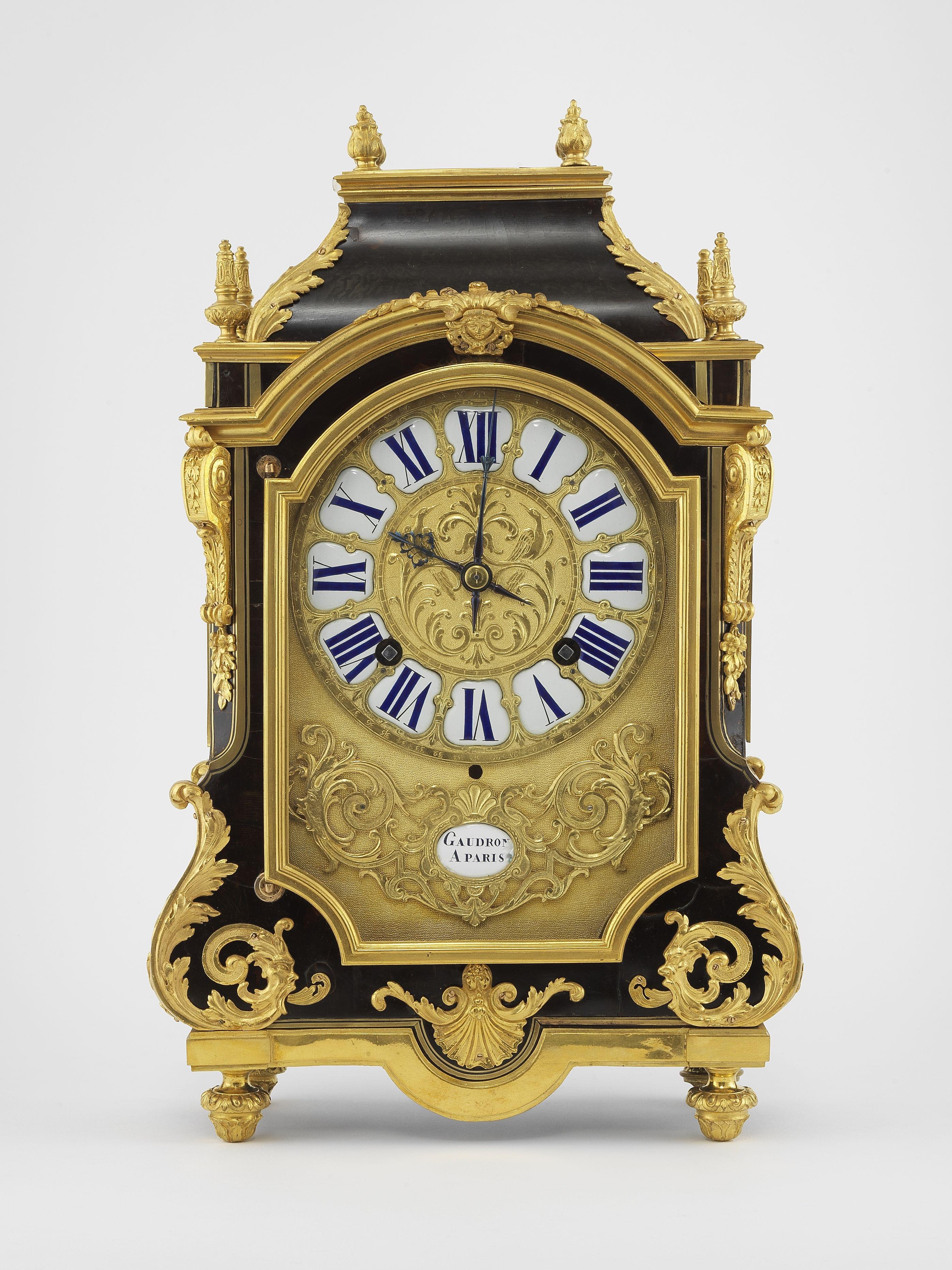 Cadran et mouvement signé Gaudron à Paris, placage d'écaille et bronze doré, H 48 cm