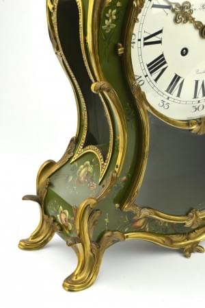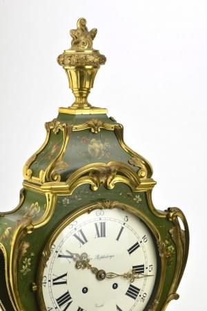 Cadran vert, chiffres romains et aiguilles stylisées dorés, sur...