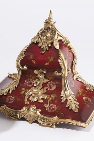 Bois laqué rouge à décor de fleurs et bronze doré, H 17 cm
