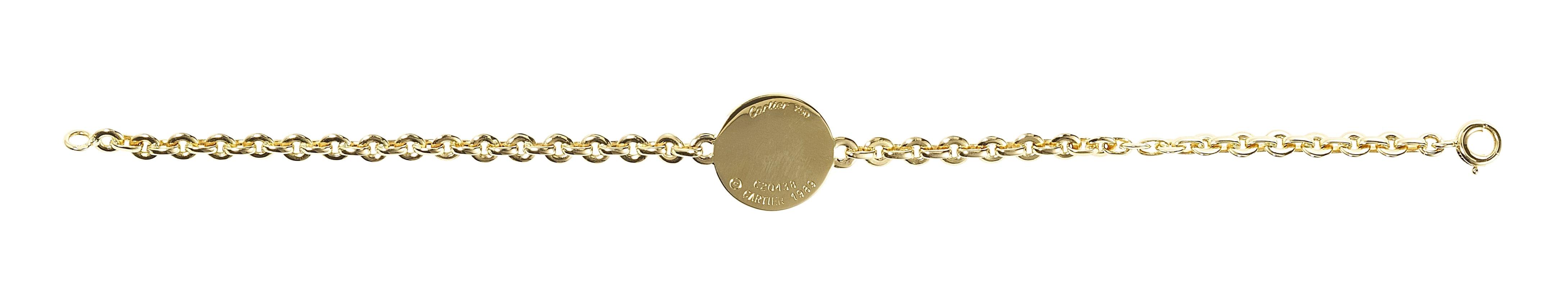 3332. Cartier, bracelet gourmette à maille ronde centré d'une plaque à graver