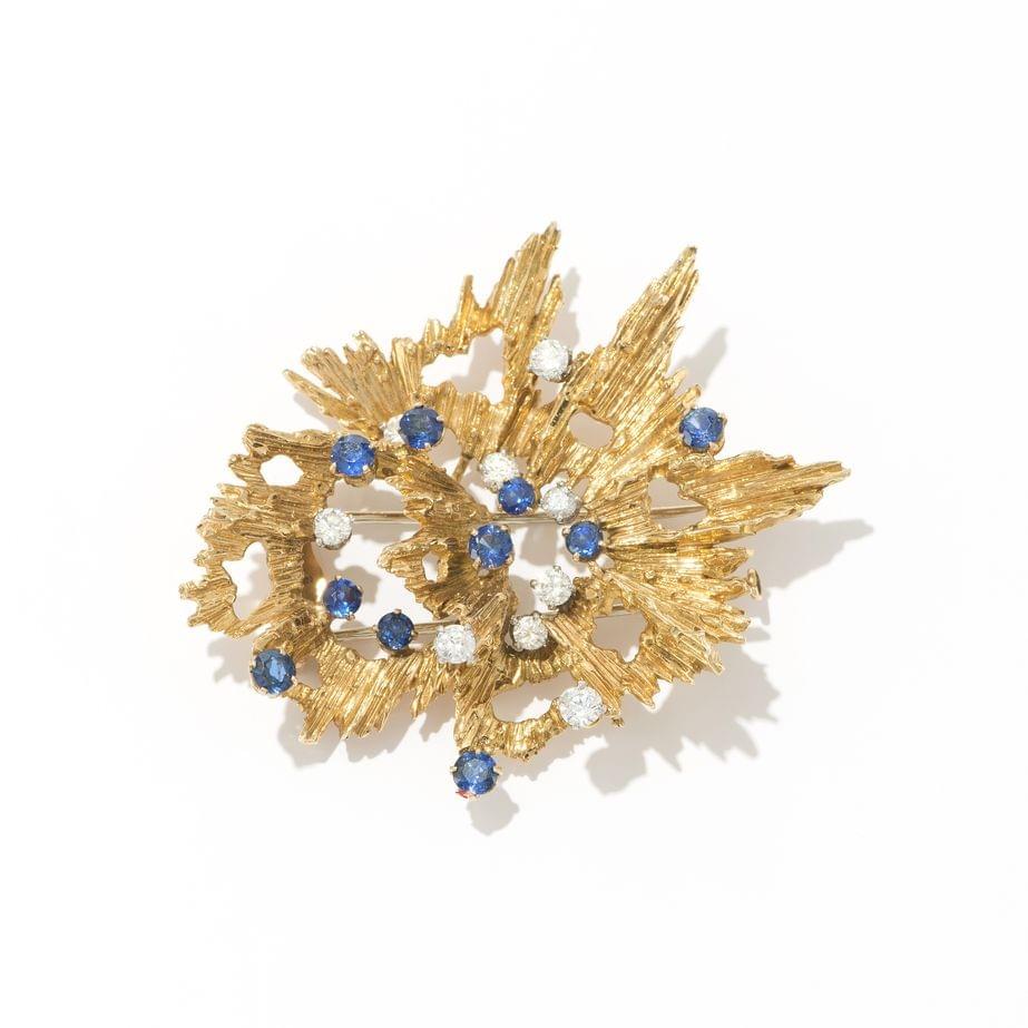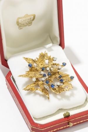 510. Cartier, broche stylisée sertie de saphirs et diamants