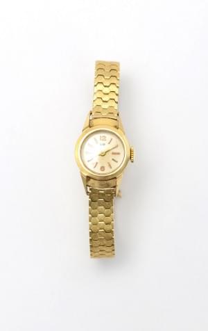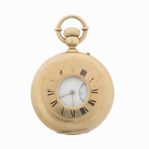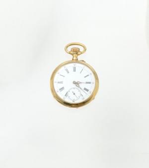 Cadran blanc, chiffres romains et arabes noirs, aiguilles dorées...