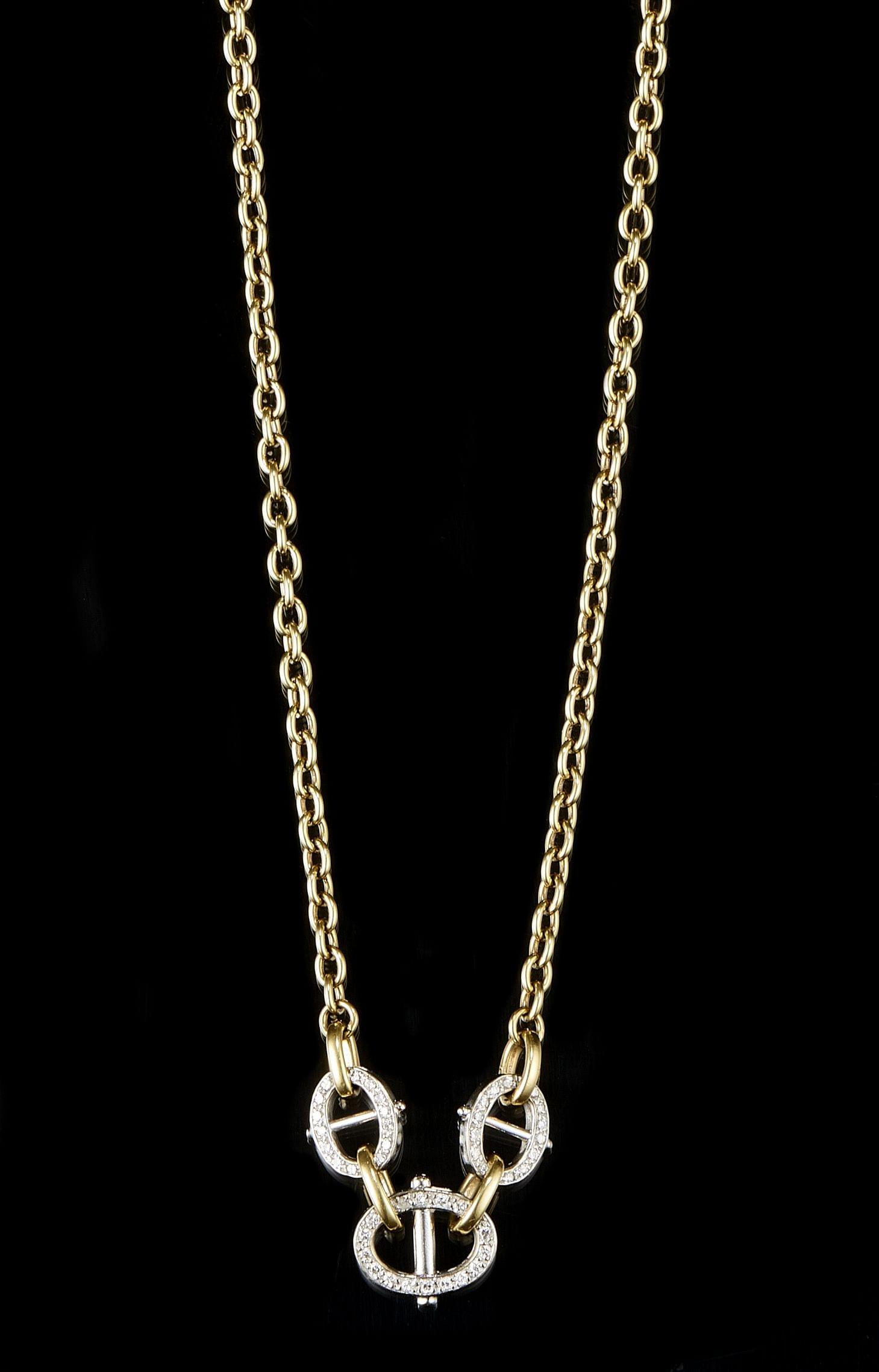 167. Cartier, collier à maille forçat centré de trois motifs ovales sertis de diamants