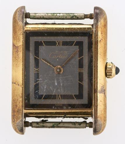 Cadran gris, aiguilles et index bâtons noirs, or gris 750, 17x15...