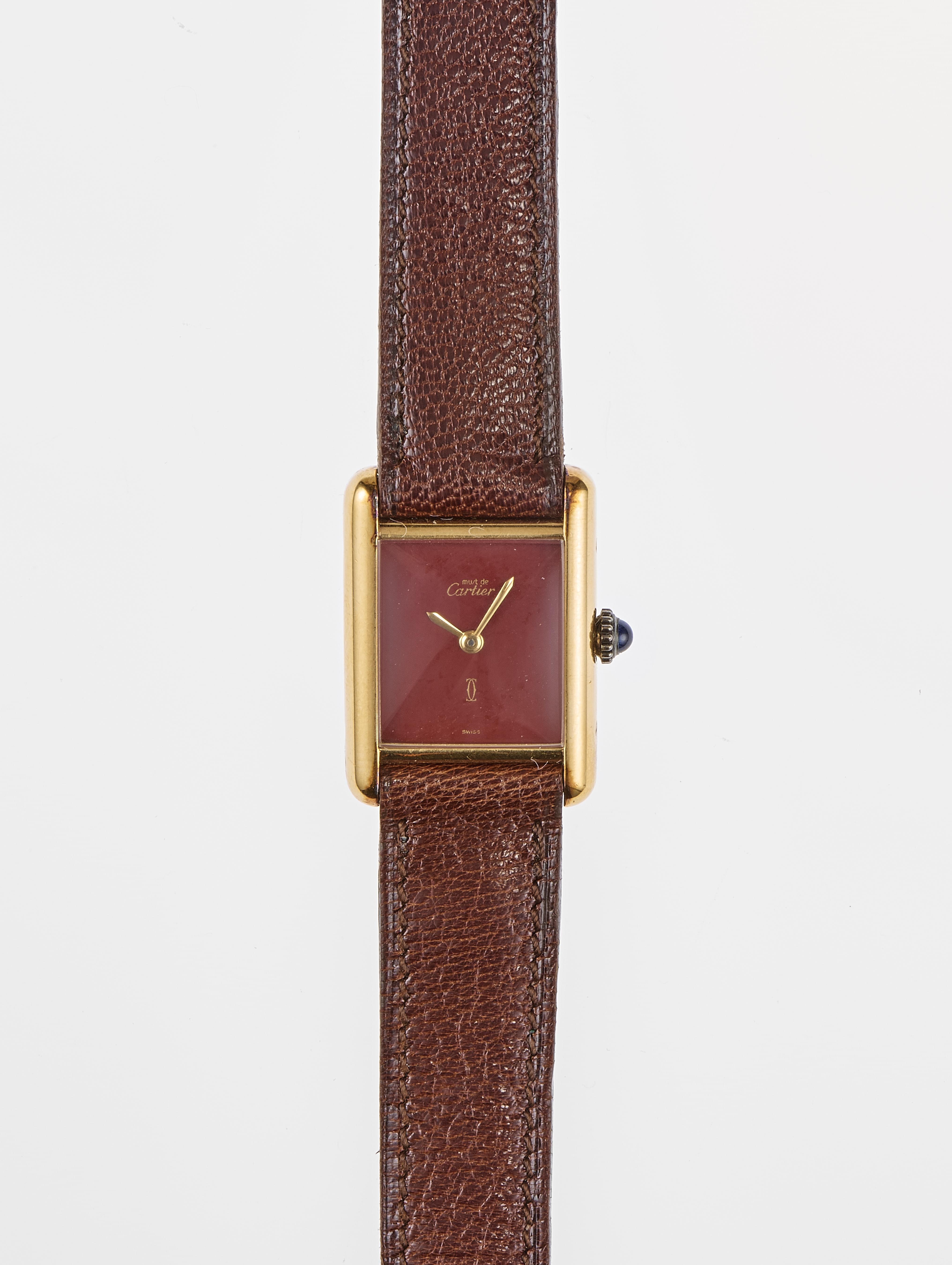 Cadran gris guilloché, aiguilles dorées, chiffres romains bleu c...