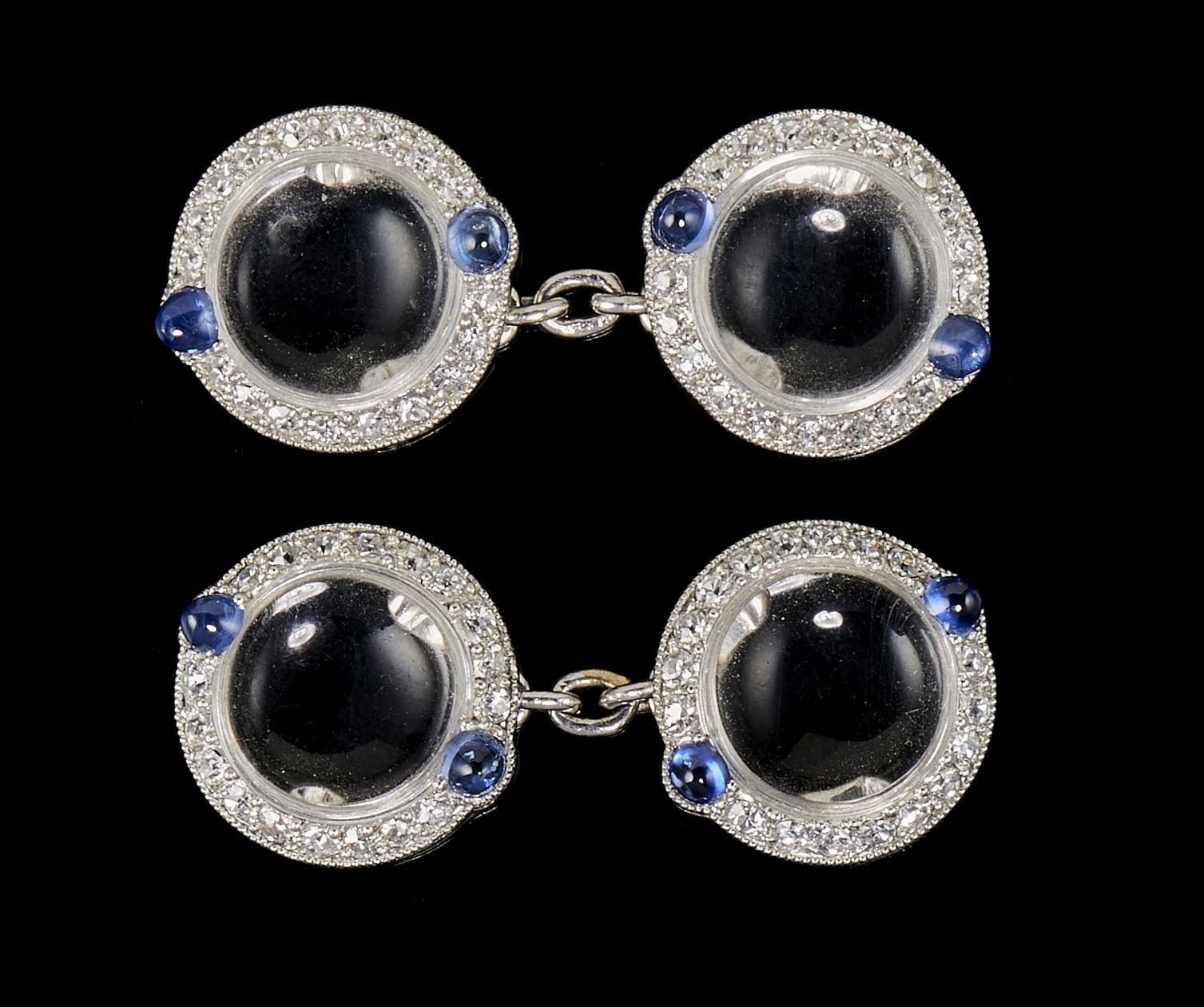 55. Cartier New York, boutons de manchette sertis de saphirs cabochon entourés de diamants
