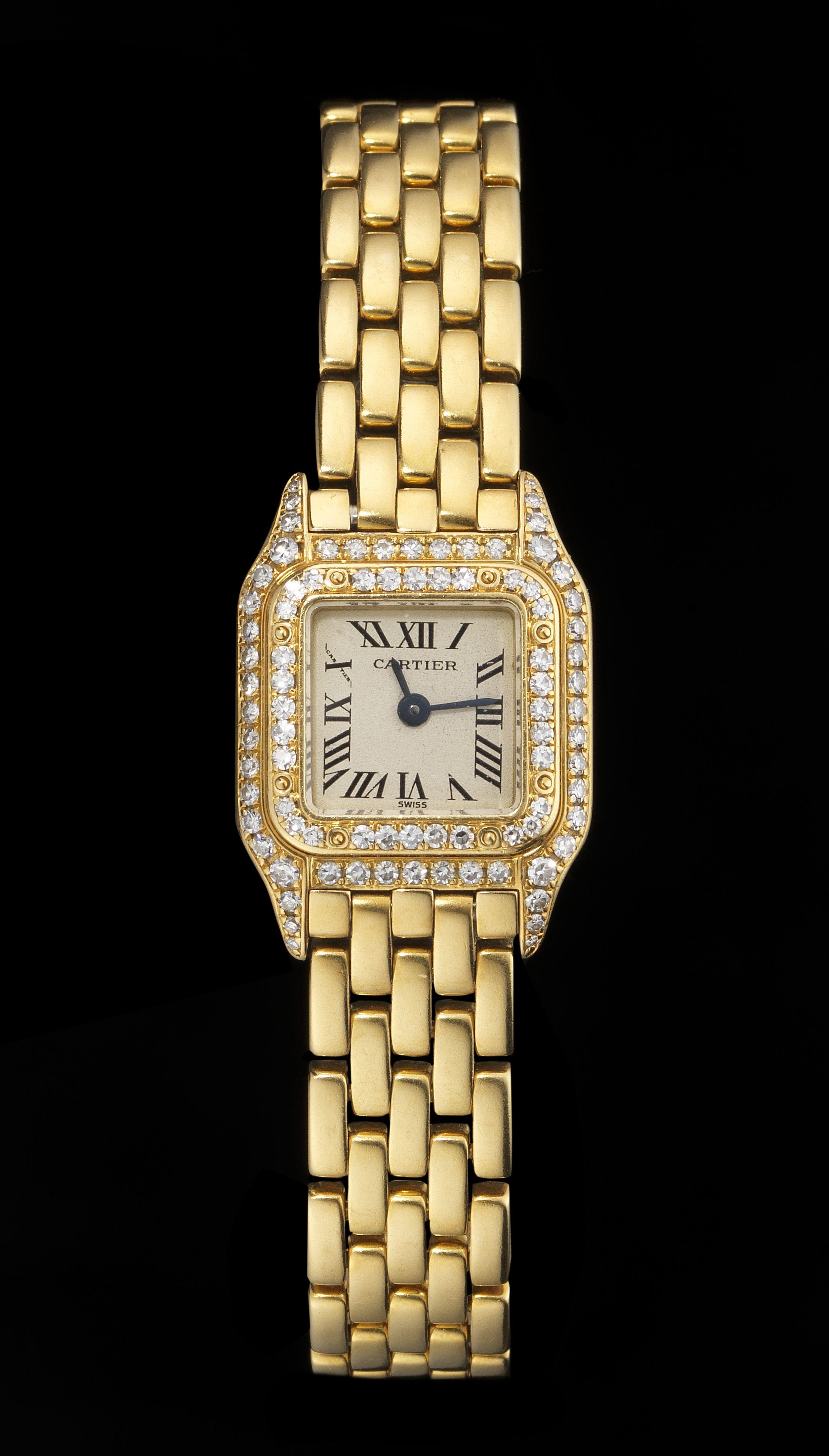 Cadran blanc retenant sept diamants mobiles, aiguilles bleuies,...