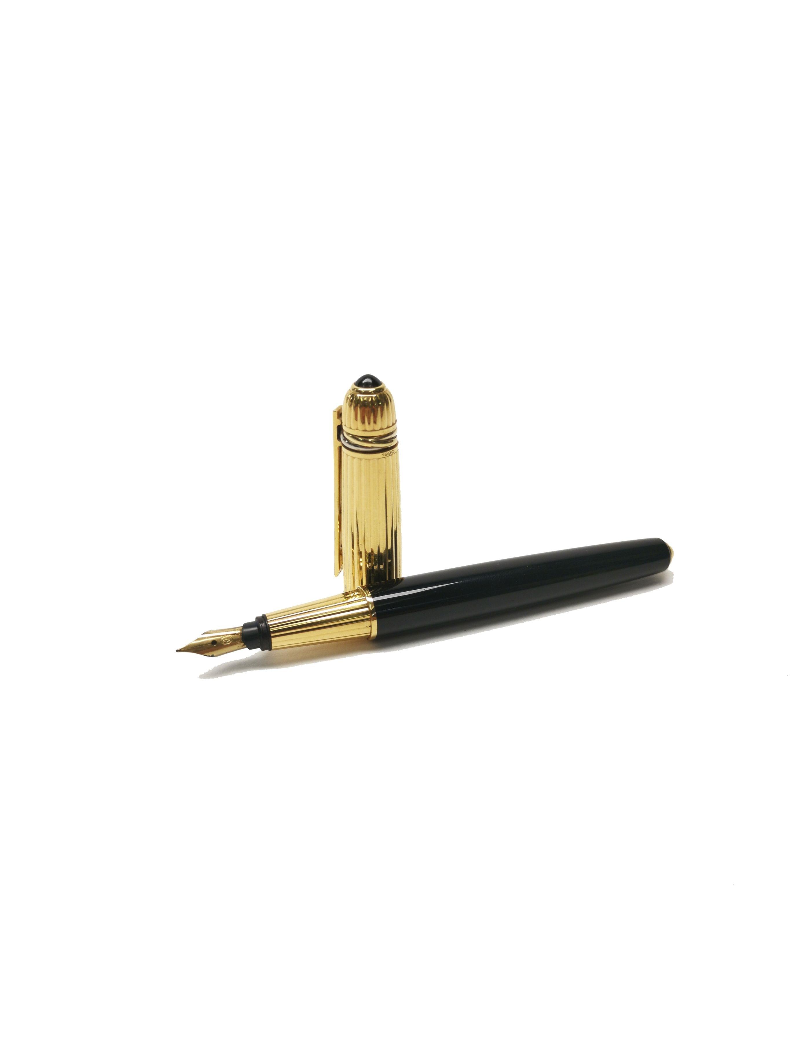 Métal doré et résine noire, capuchon serti d'un cabochon d'onyx, L 14 cm. Provenance: collection Pernet-Villaverde