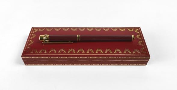 Métal doré et laque rouge, plume en or 750, signé, numéroté 0245...
