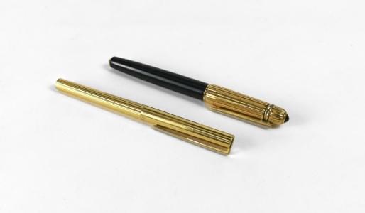 Métal doré et résine noire, capuchon serti d'un cabochon d'onyx,...