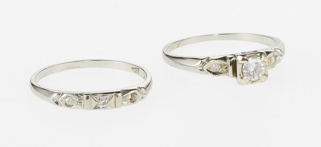 Alternées de lignes de diamants (env. 1 ct), or gris 750, doigt...