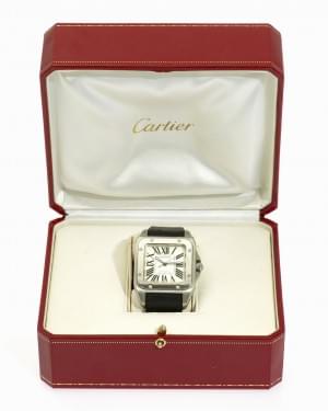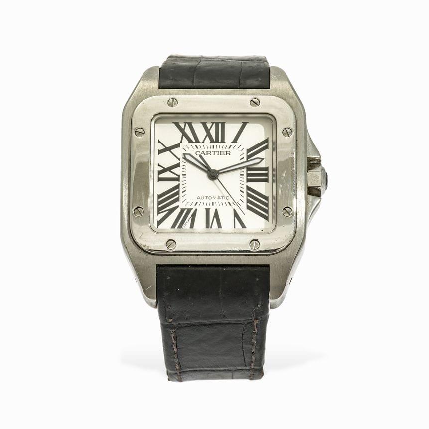 Cadran argenté, chiffres romains noirs, acier, 38x38 mm, dans son écrin, avec certificat