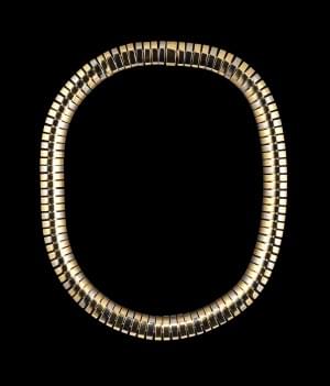 38. Sautoir ouvrant serti de motifs de cœurs en améthystes, quartz r...