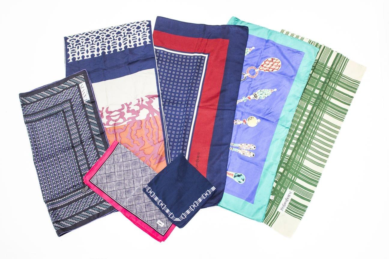 3033. Cartier, Yves Saint Laurent, Lanvin, Céline, lot de sept foulards
