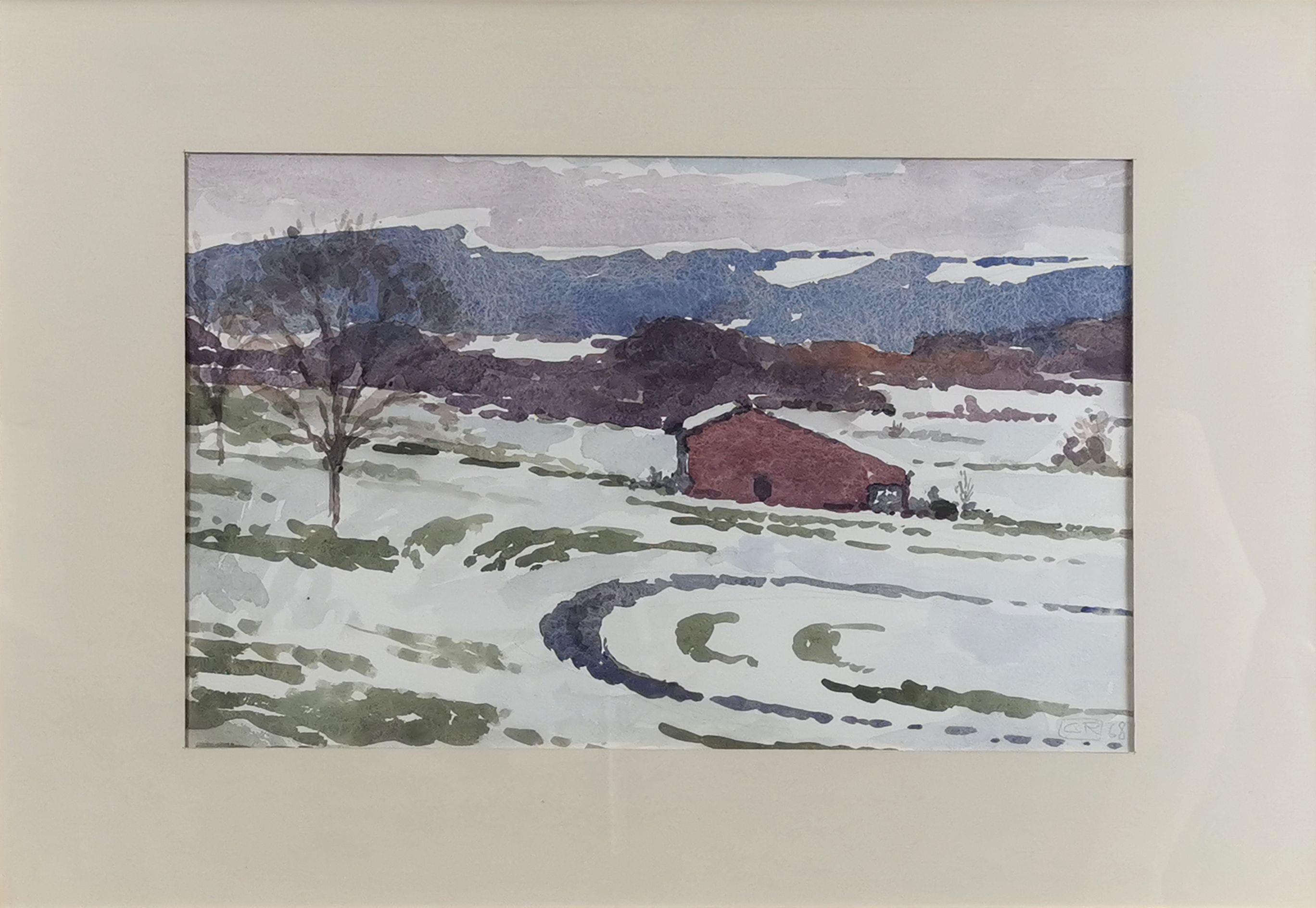 Paysage, aquarelle, signée et datée 1968, 31,5x49 cm.