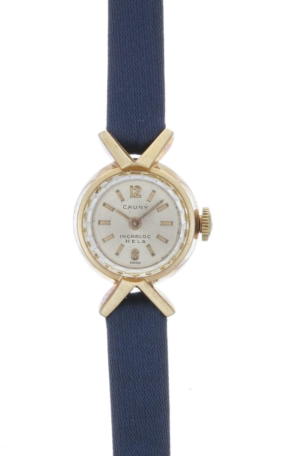 Cadran gris, aiguilles et index bâton dorés, boîtier en or 750, D 15 mm, poids brut 9 g