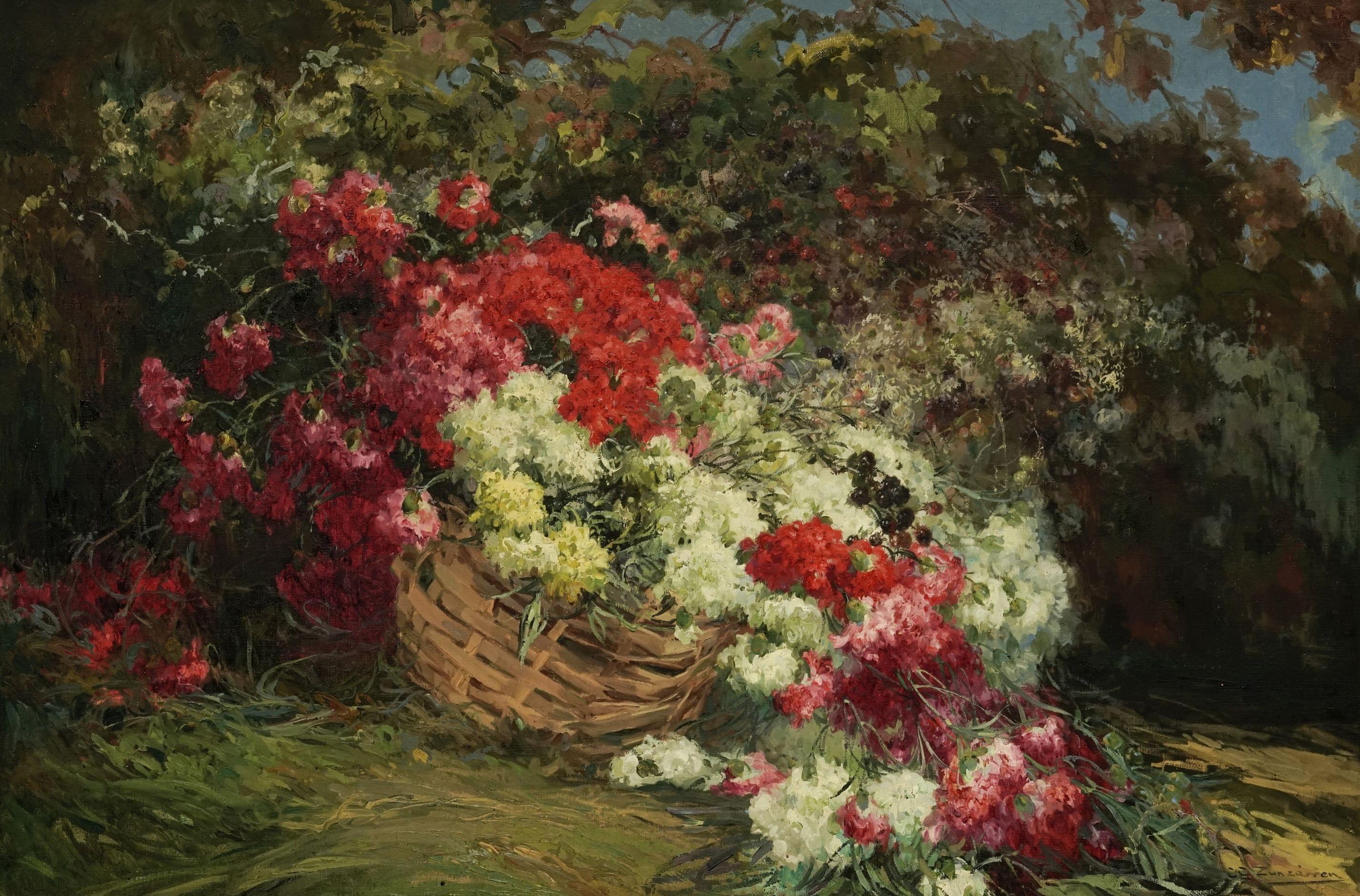 Bouquet de fleurs, huile sur toile, signée, 98x150 cm