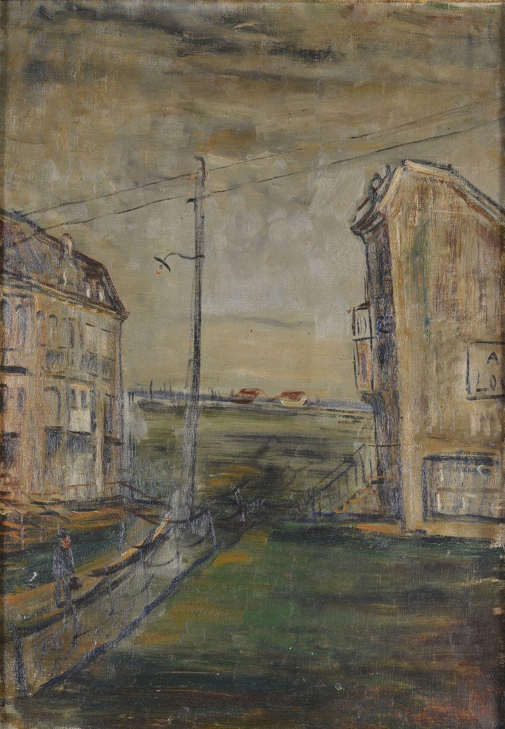 Crue de la Seine à Paris, huile sur toile, signée, 52x36 cm