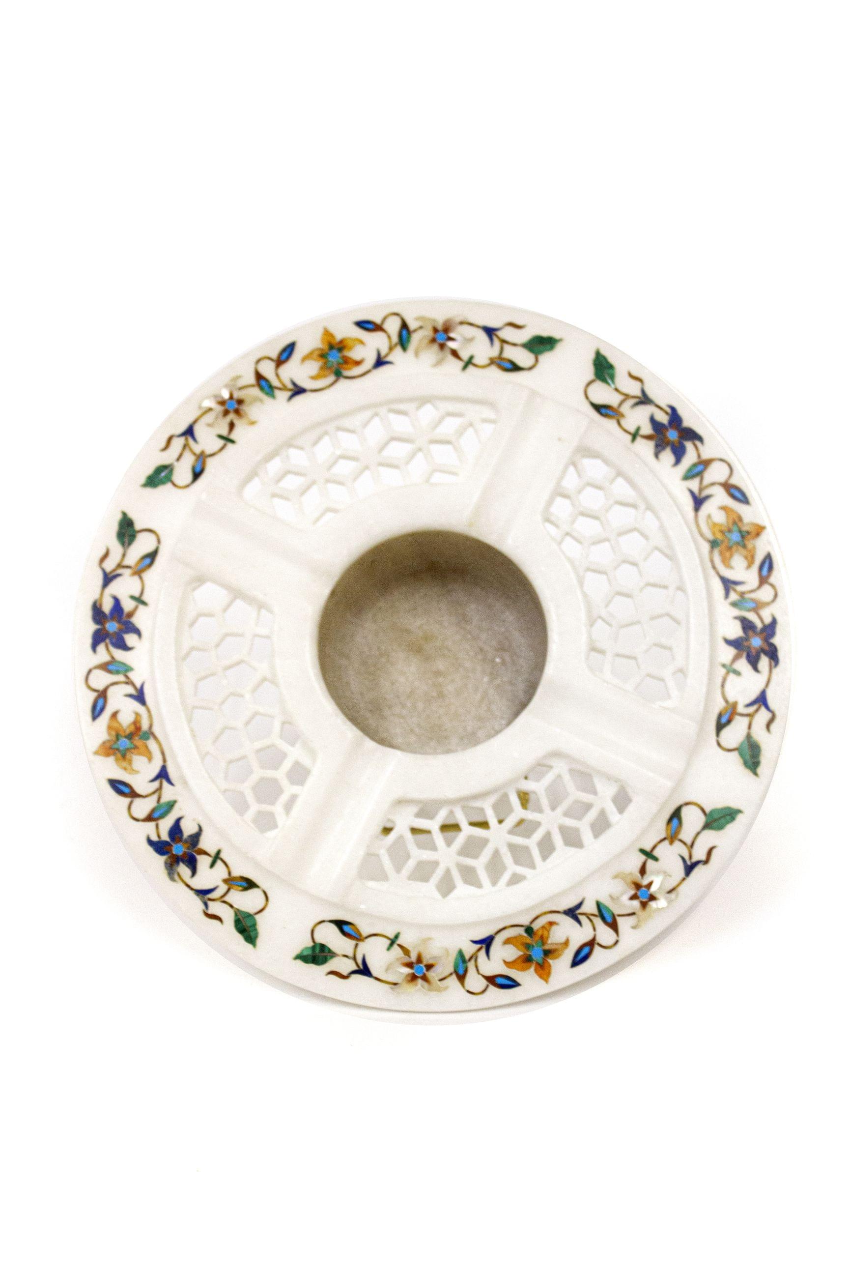 Marbre blanc incrusté de pierres de couleur, D 22,5 cm