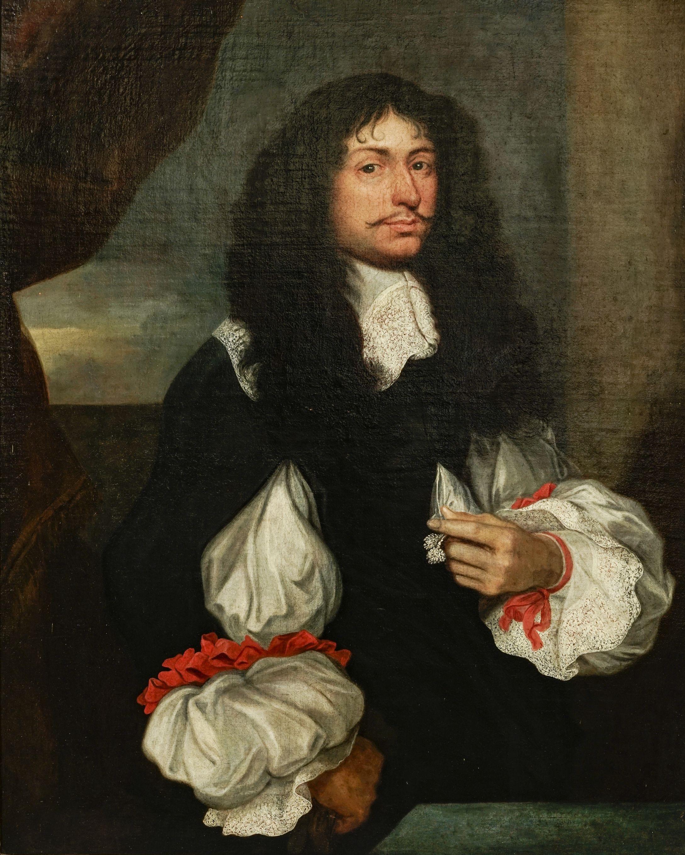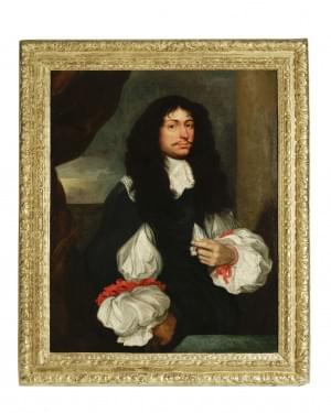 Portrait d'un gentilhomme, huile sur toile, 101x81 cm. Provenance: Galerie Charpentier, Me Couturier, 18 juin 1957. Cadre d'époque XVIIe s en bois sculpté et redoré
