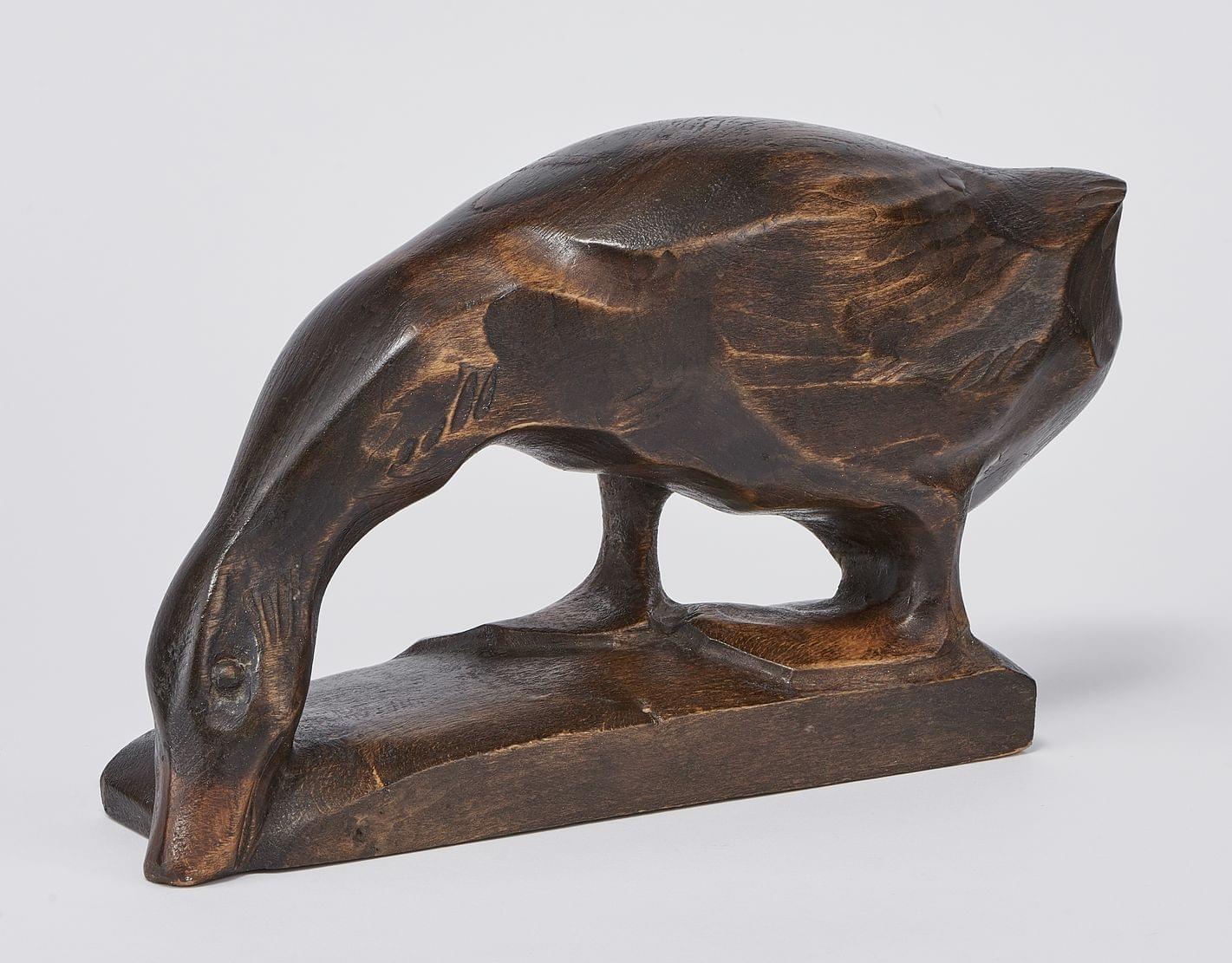 Canard, bois sculpté, signé, L 20 cm