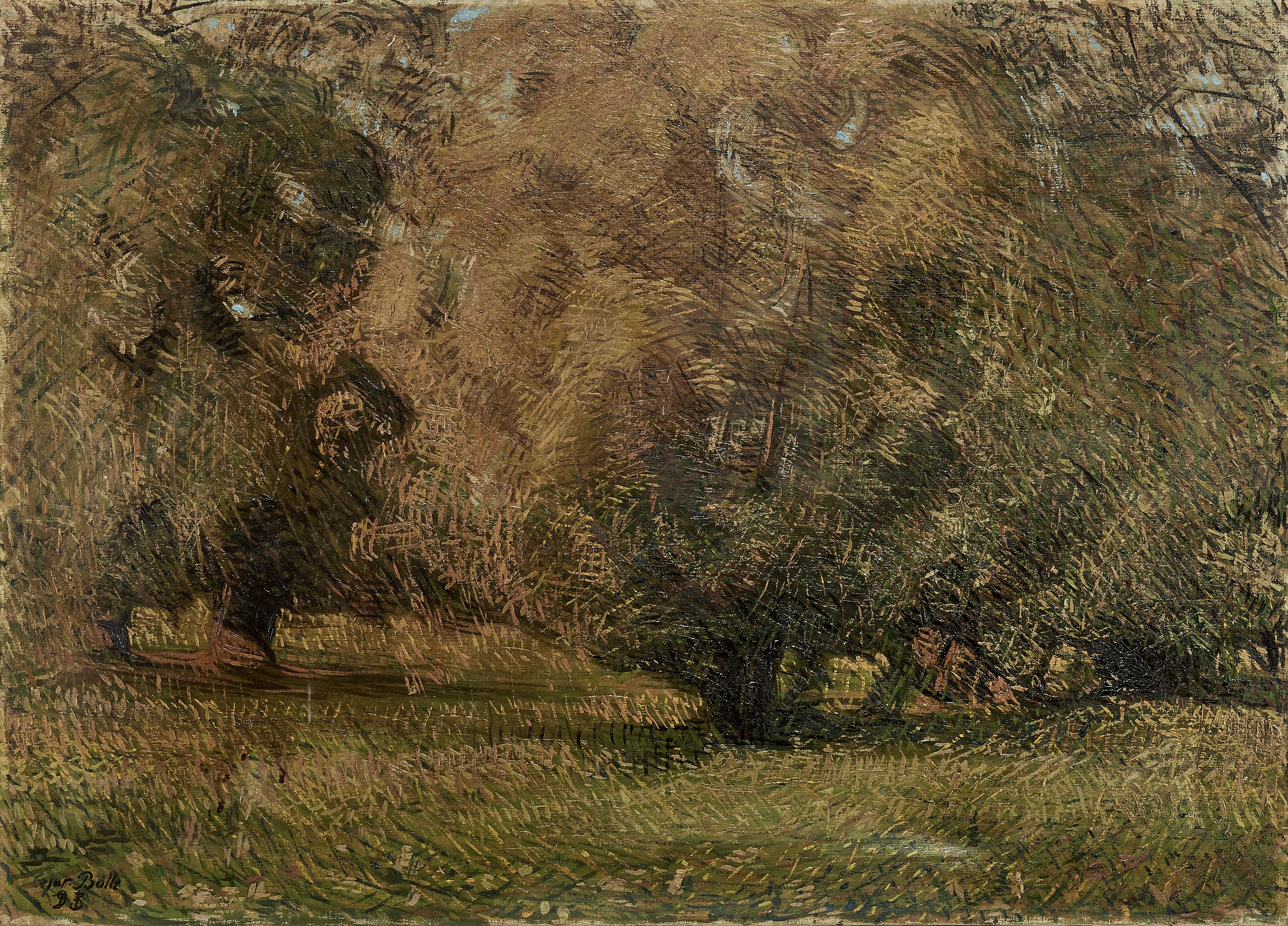 Arbre dans la prairie, huile sur toile, signée et datée 1913, 66x91 cm