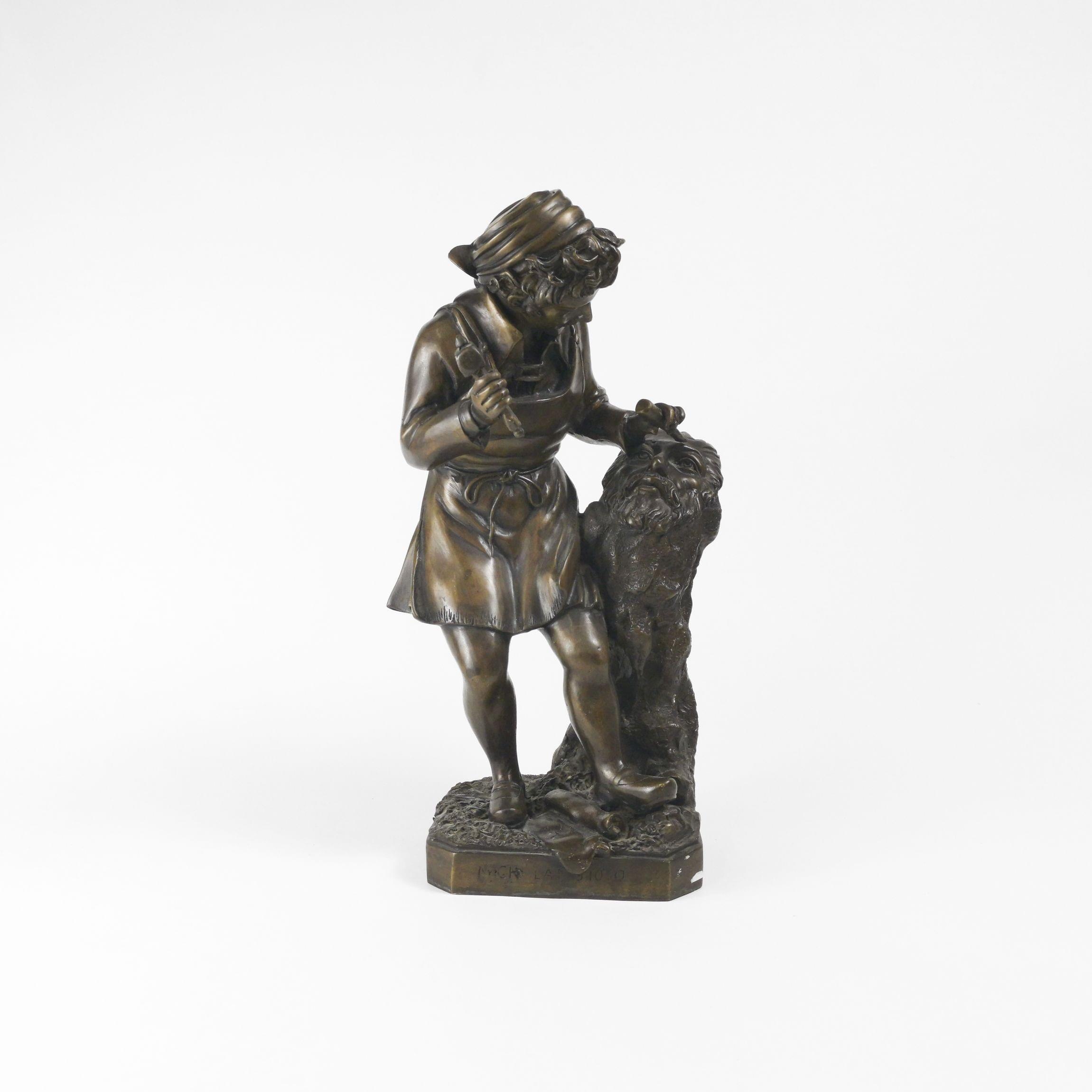 Michelange façonnant la tête d'un faune, alliage cuivreux, H 45 cm