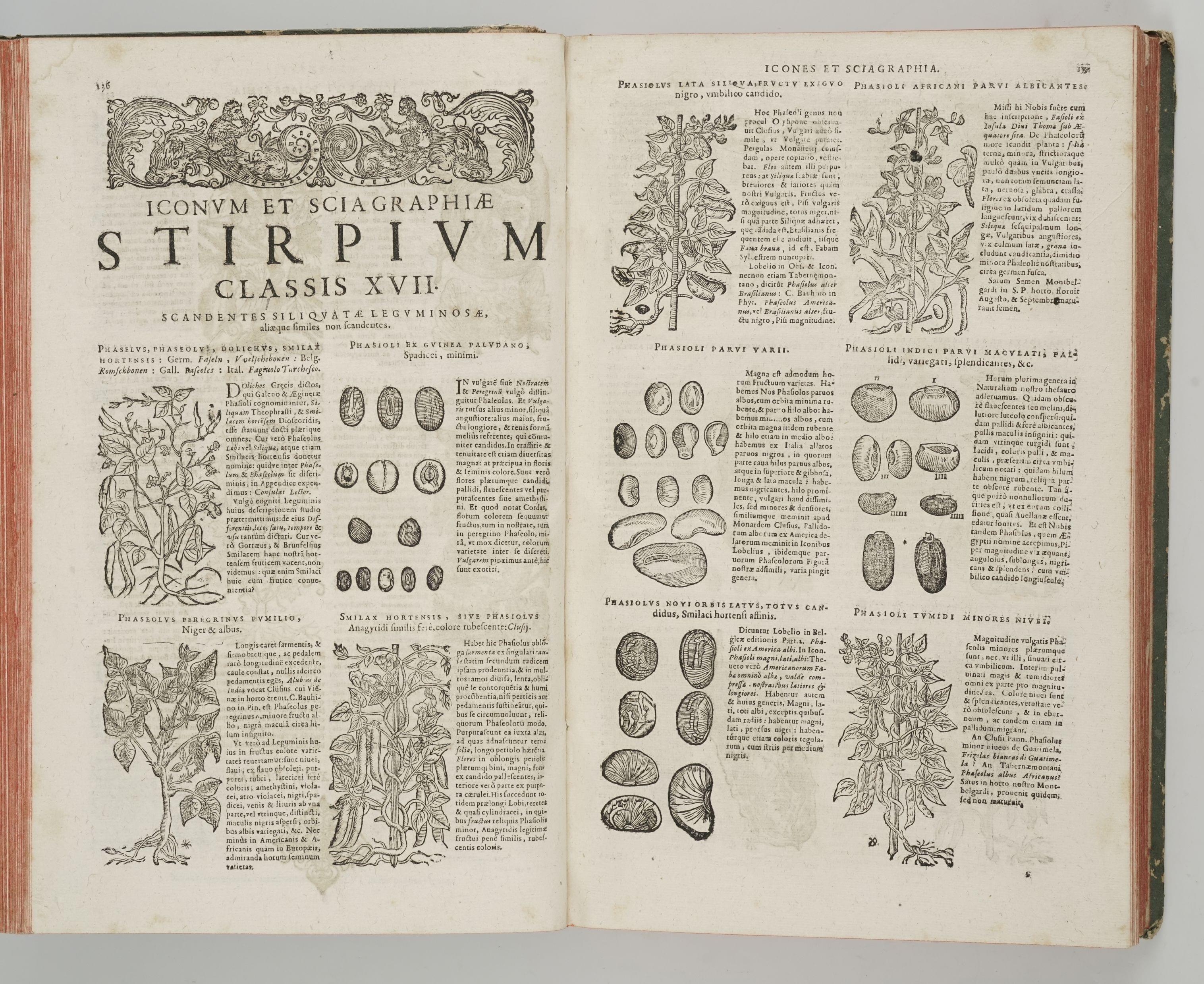 In-folio, cart vert postérieur, tranches rouges. L’ouvrage comprend le très beau titre frontispice gravé de l’édition du Stirpium Sciagraphia et Icones Ex Musaeo Dominici Chabraei, Med. Doctoris. Coloniae Allobrogrogum (Genève).Très nombreuses figures gravées sur bois dans le texte