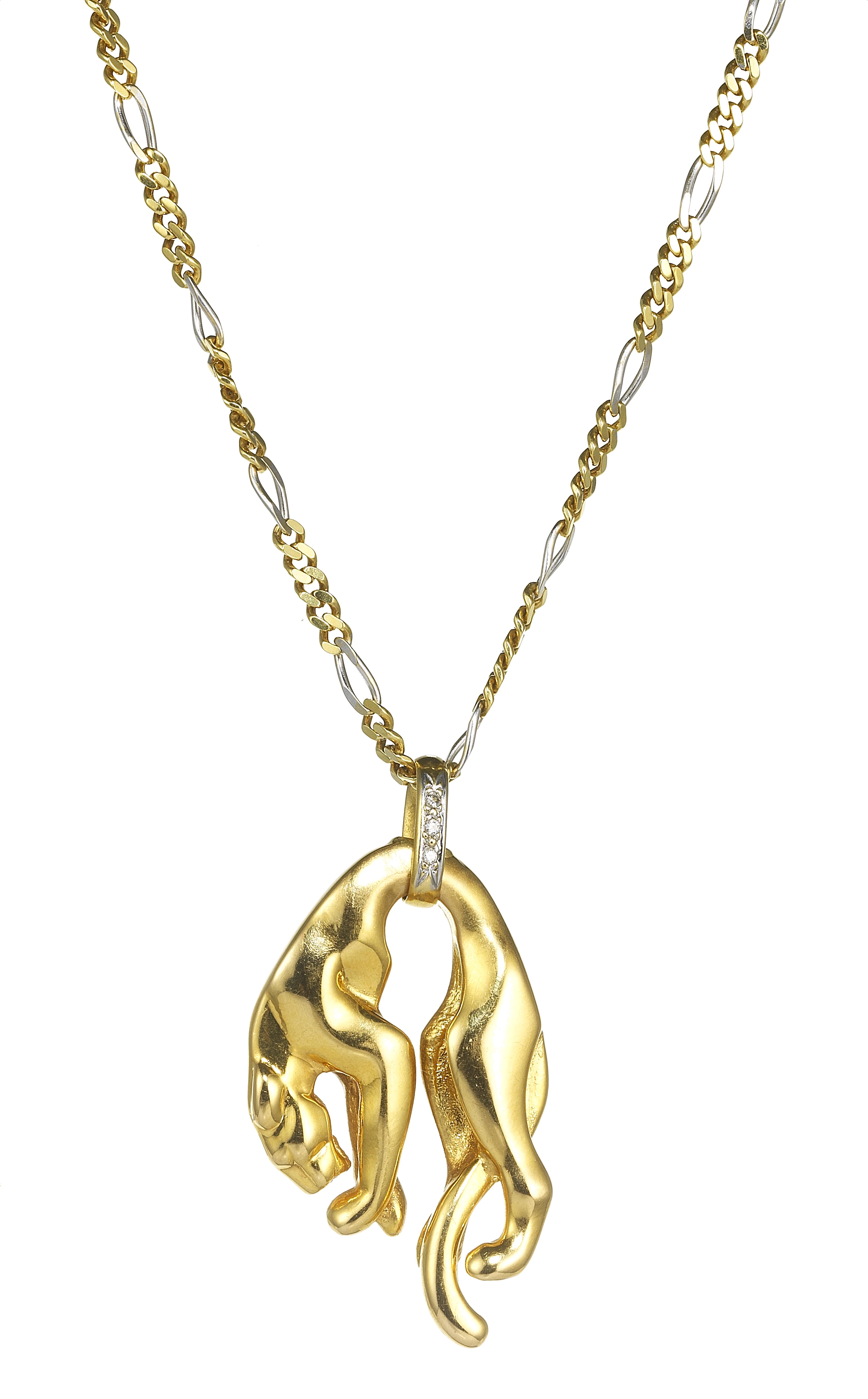 3468. Chaîne à maille figaro deux ors retenant un pendentif à motif de toison de panthère