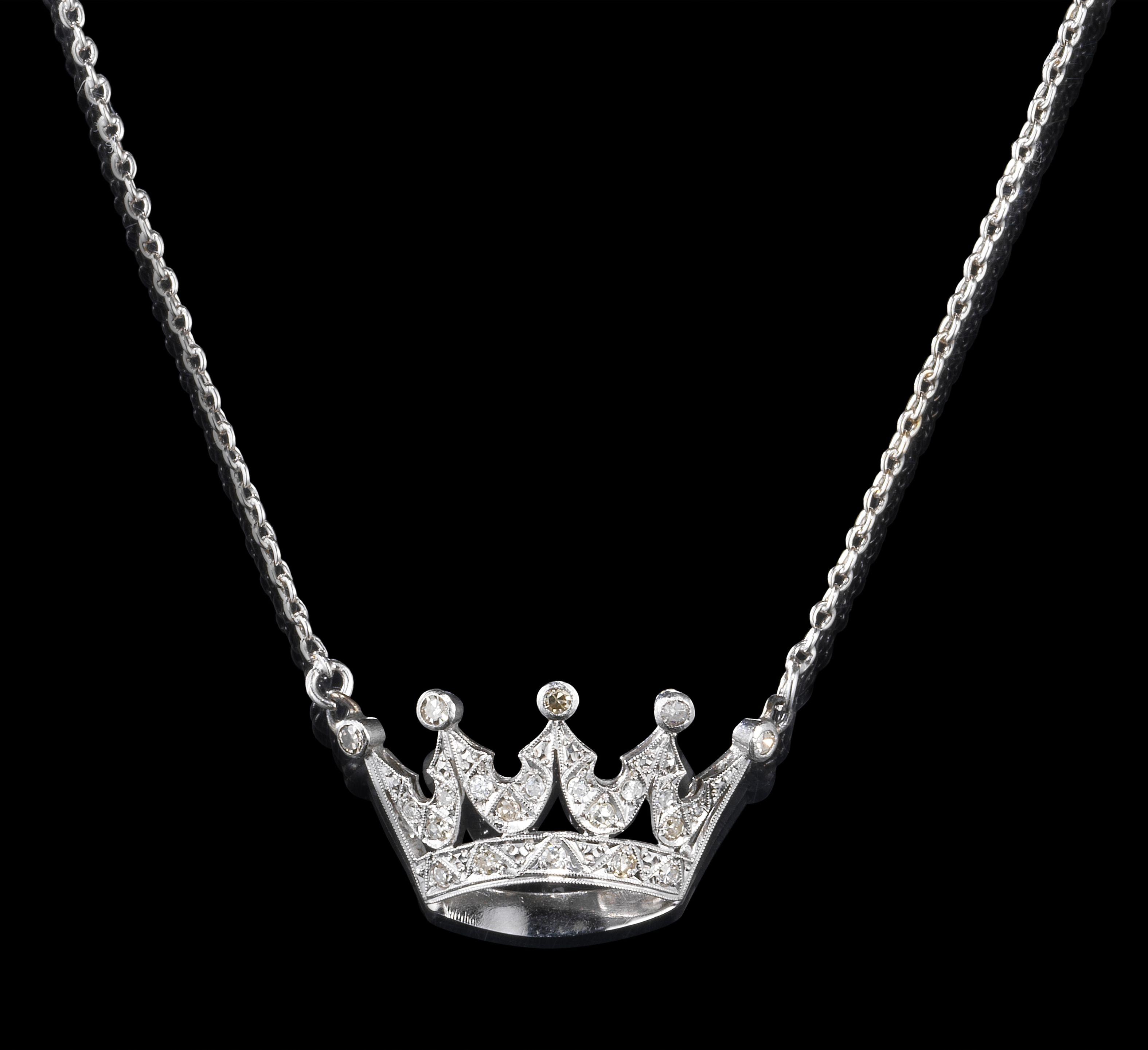3356. Chaîne à maille forçat centrée d'un motif de couronne pavée de diamants taille 8/8