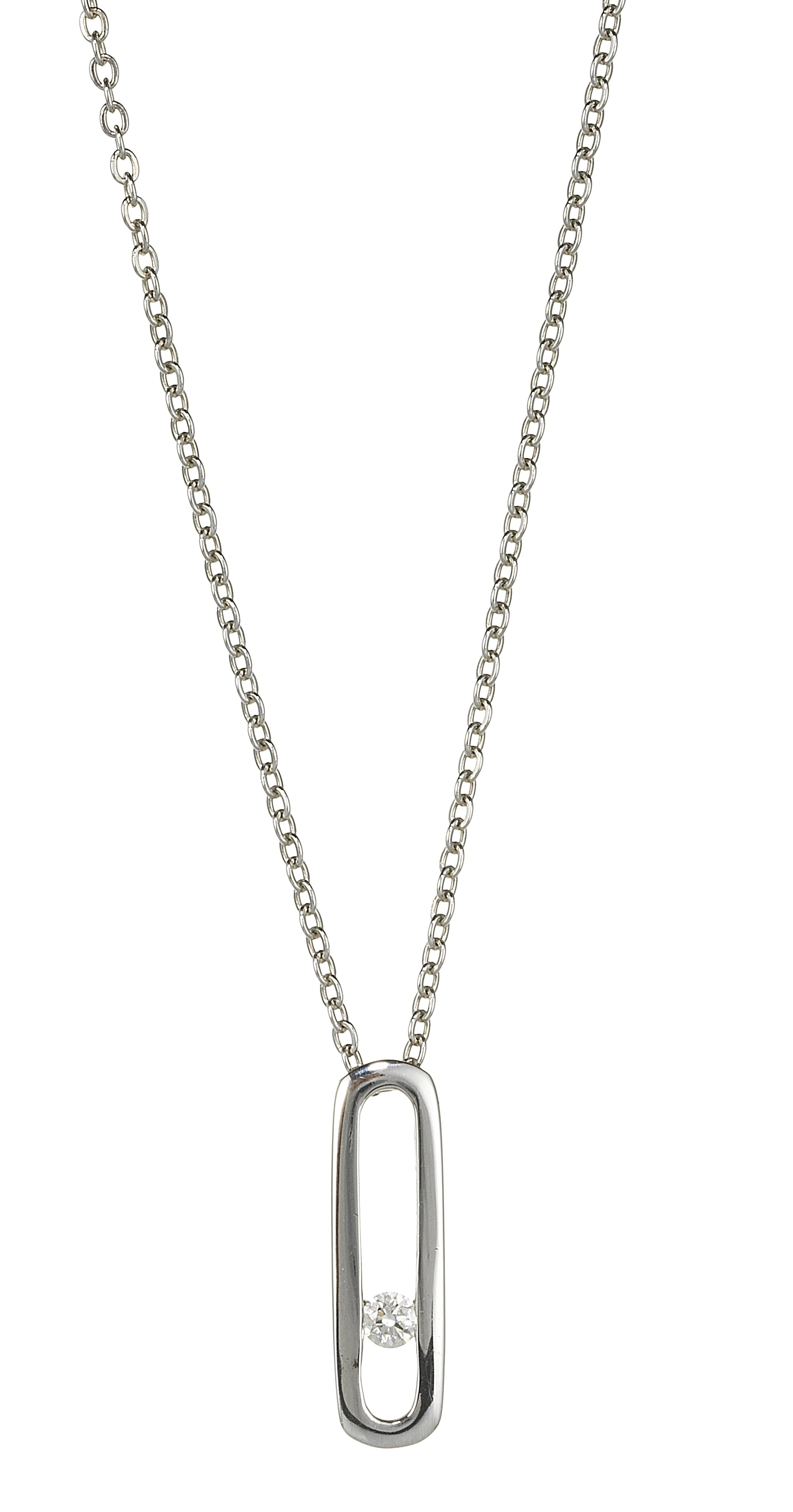 3146. Chaîne à maille forçat retenant un motif ovale ajouré serti d'un petit diamant