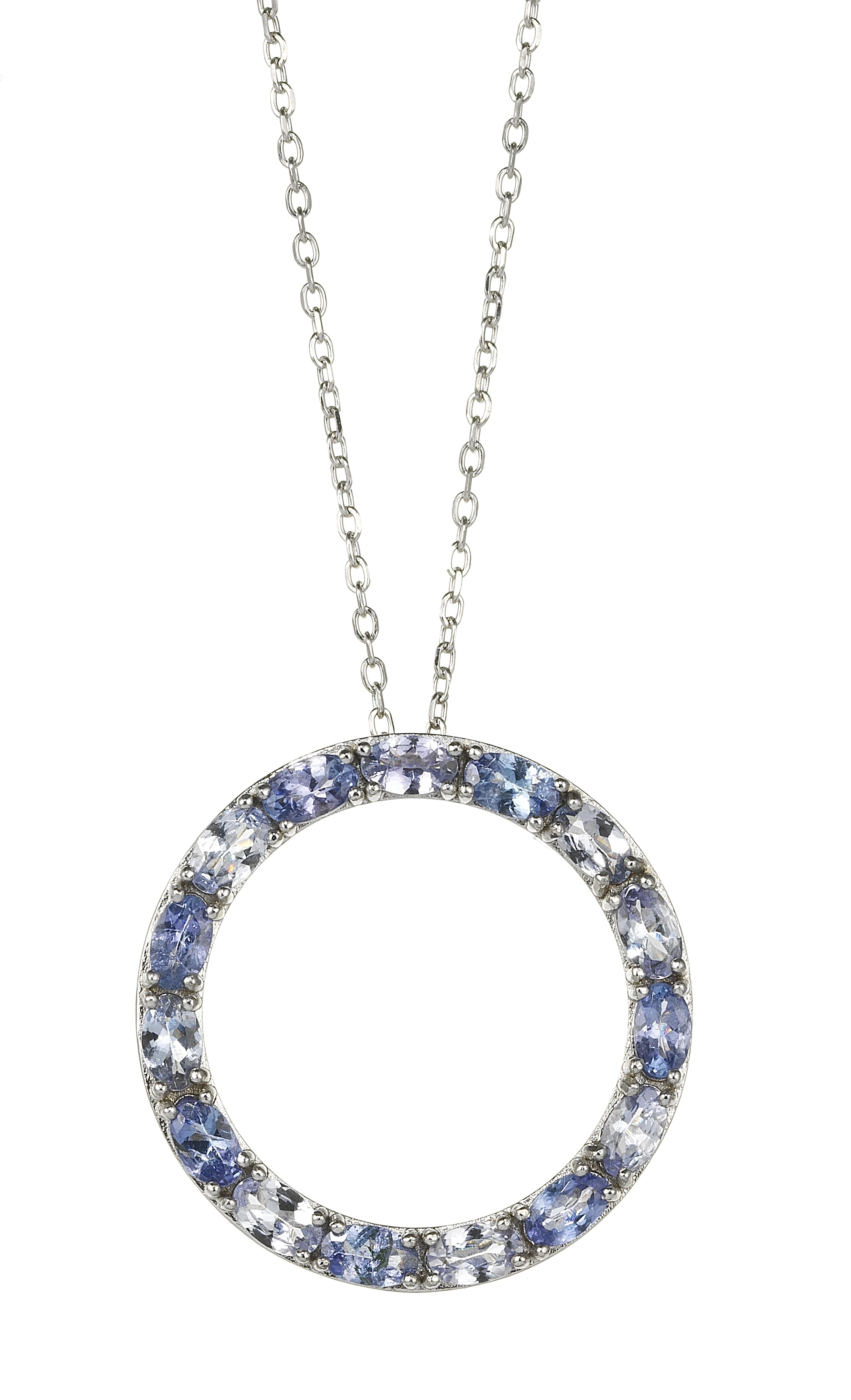 3306. *Chaîne à maille forçat retenant un pendentif circulaire serti de tanzanites taille ovale