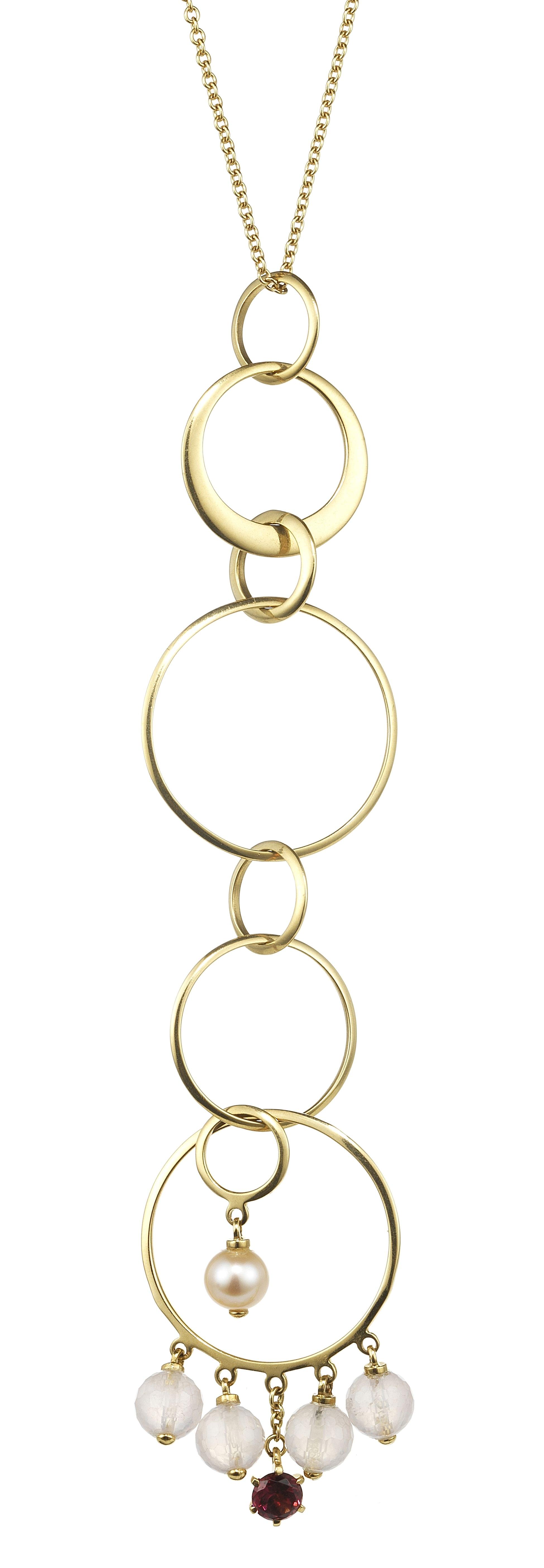 59. Chaîne à maille boule retenant un pendentif serti d'un quartz ro...