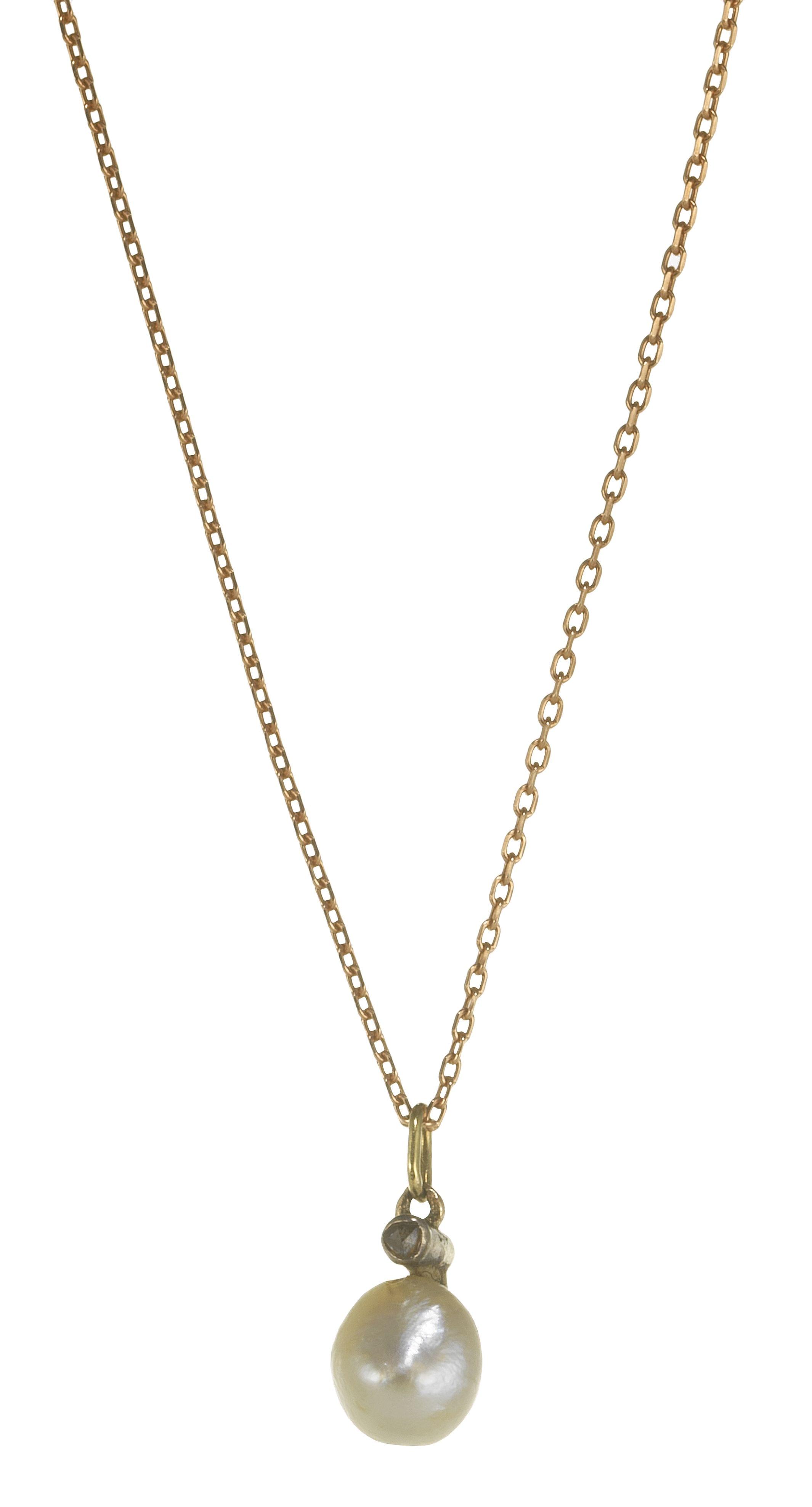 144. Collier composé de perles et de perlettes d'or en alternance ret...