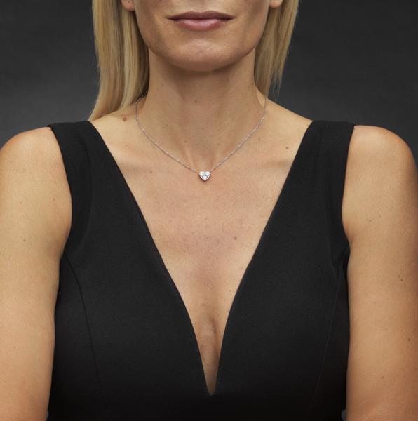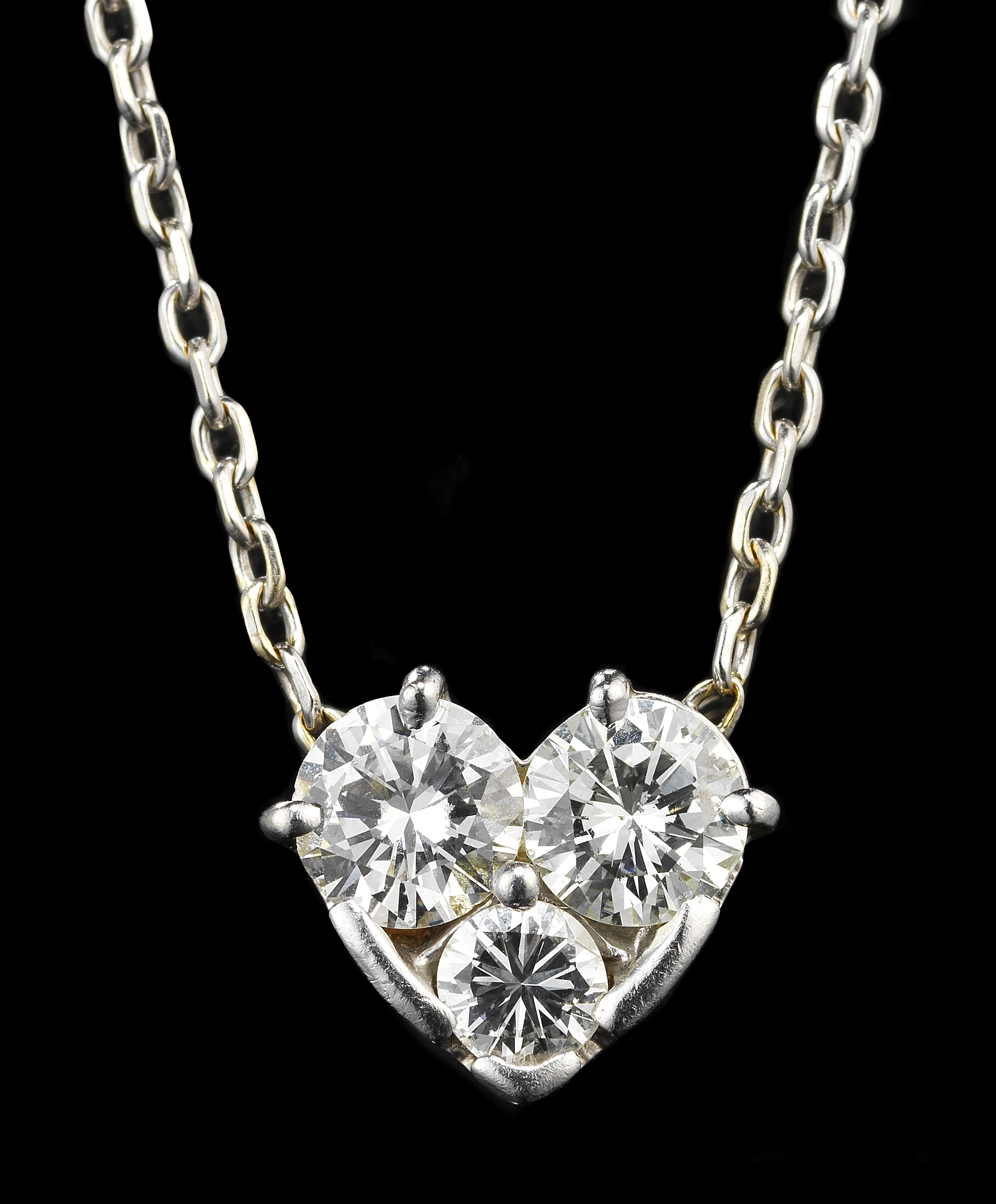 92. Chaîne à maille gourmette retenant un pendentif cœur serti de trois diamants taille brillant (total env. 1,2 ct)