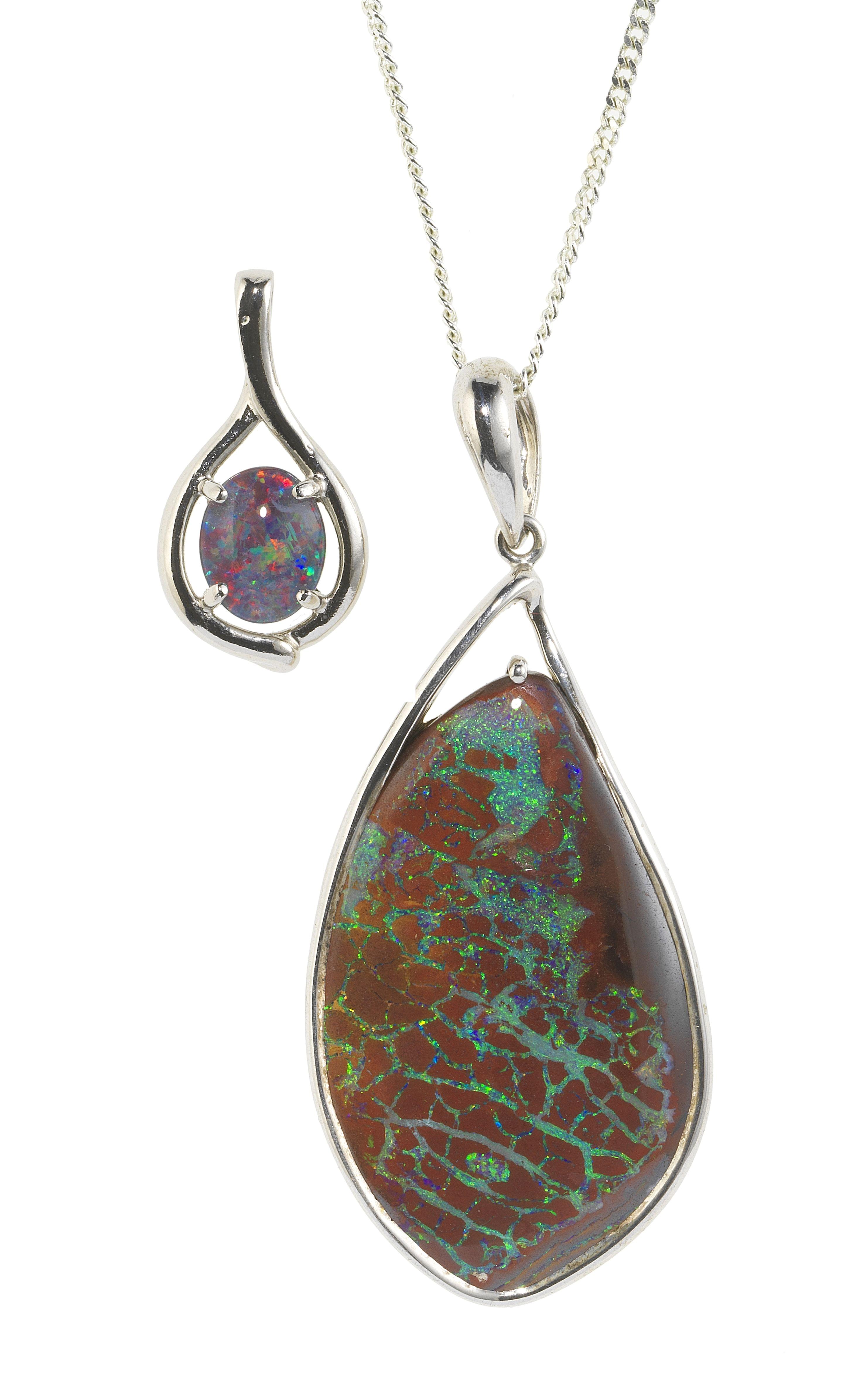 Argent 925 et métal, L 41 cm, H 6 cm. On joint un pendentif serti d'une opale taille cabochon ovale, argent 925, H 2,5 cm.