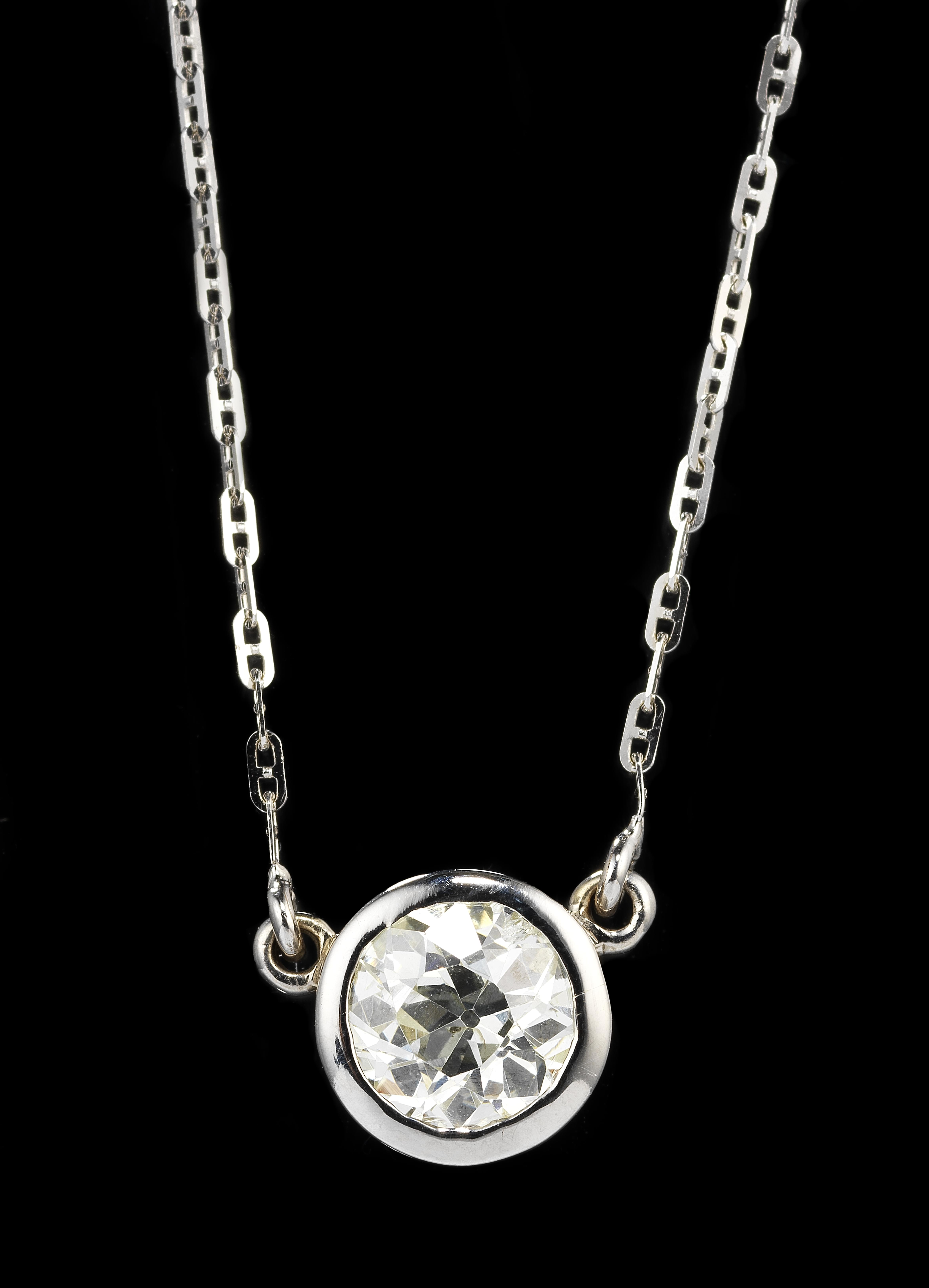 91. Chaîne à maille marine retenant un diamant solitaire taille ancienne en serti clos (env. 0,7 ct)