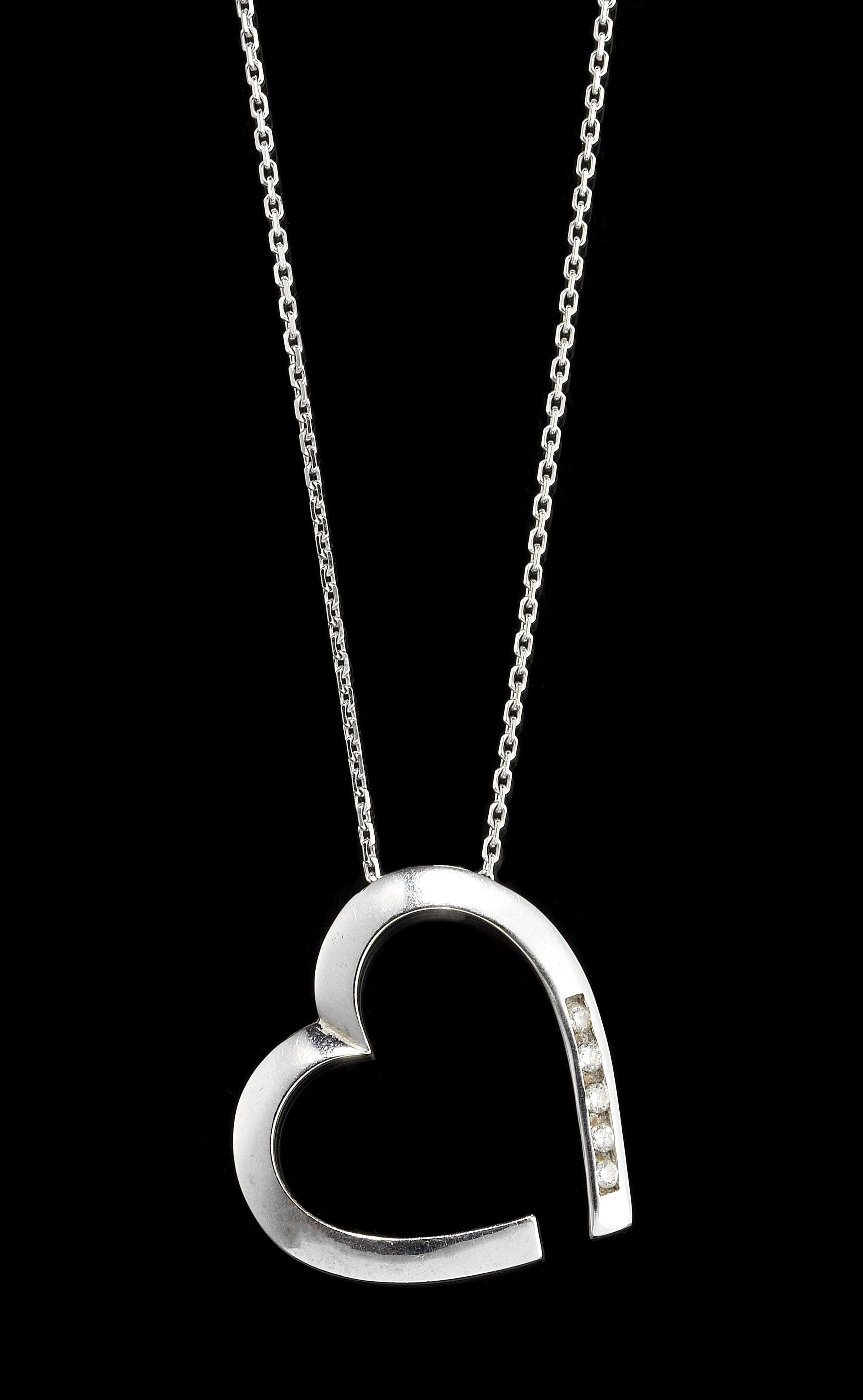 3250. *Chaîne retenant un pendentif à motif de cœur stylisé serti de cinq diamants