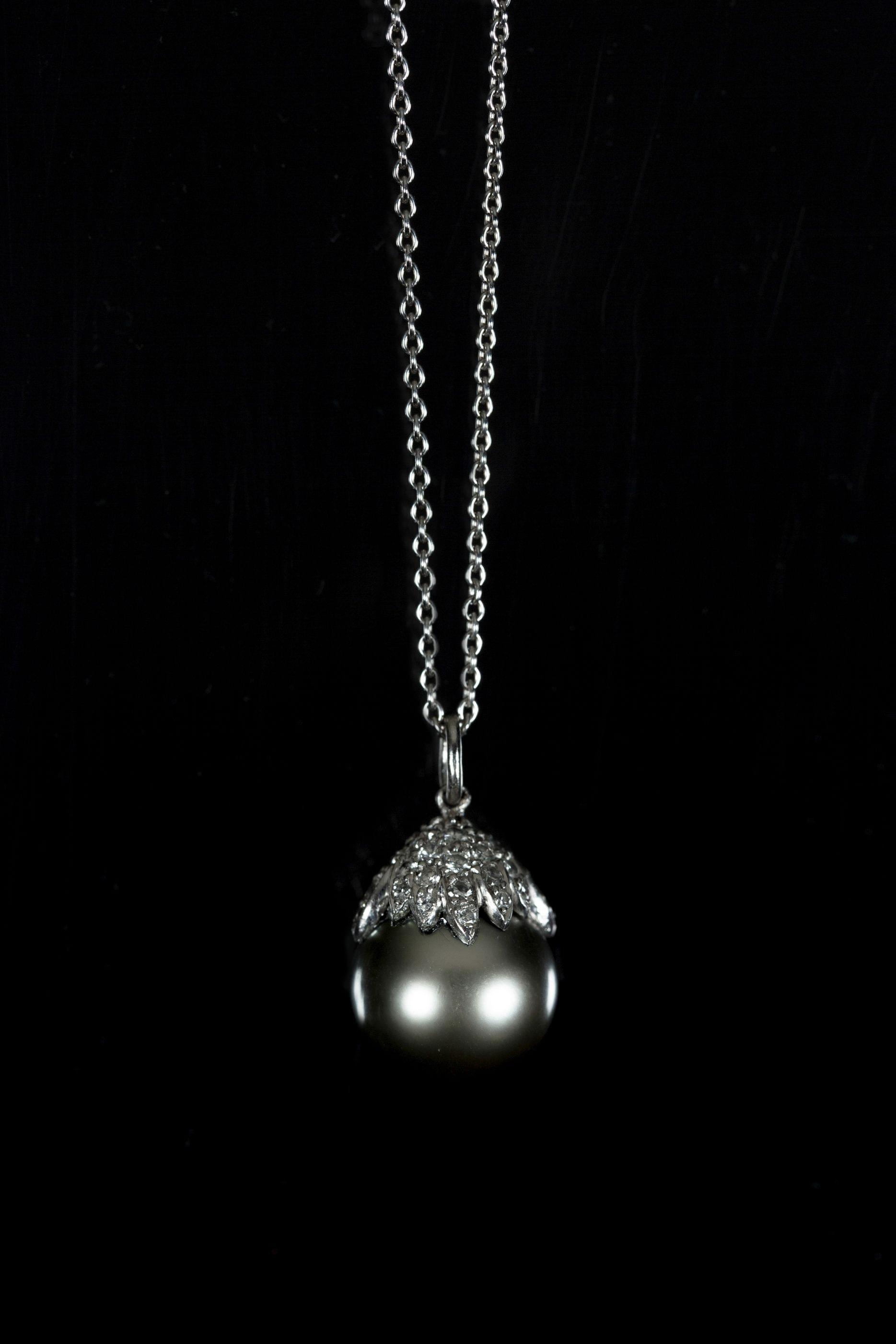 794. Chaîne retenant un pendentif serti d'une perle de Tahiti rehaussée de diamants