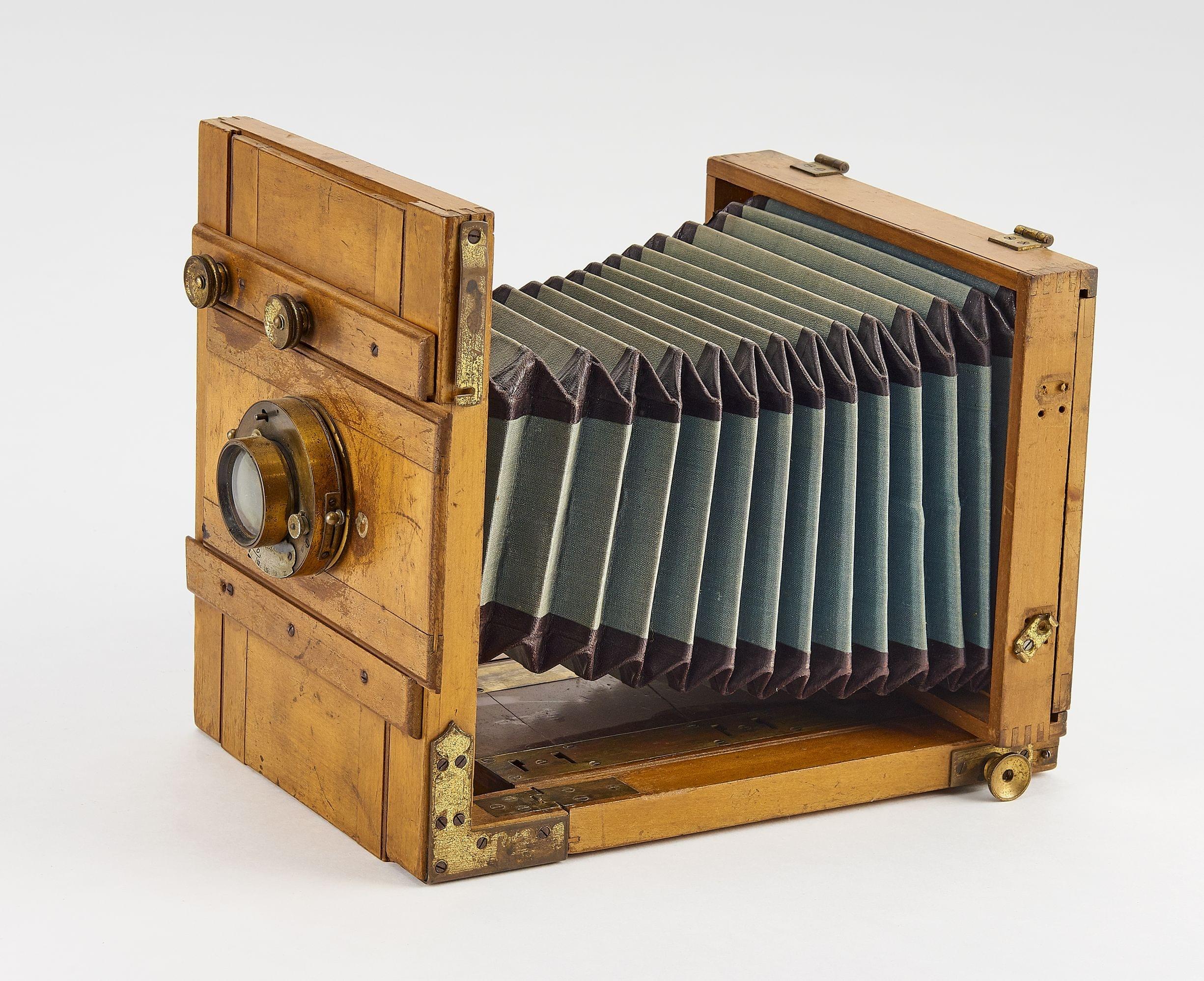 Objectif Detectiv Aplanat F 8 Ernemann Dresde, décentrement horizontal avant, bois au naturel et soufflet verte