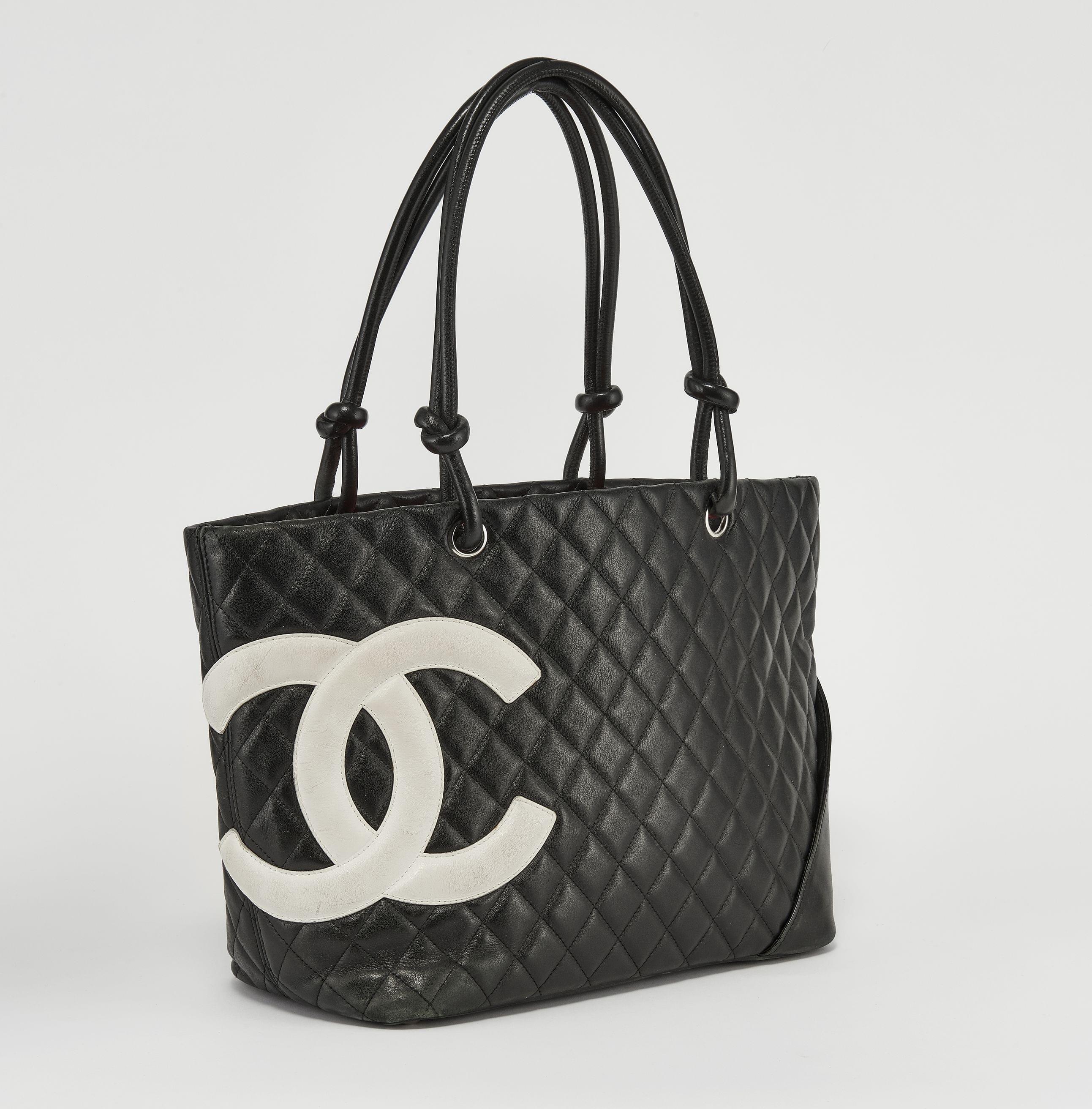 Cuir lisse noir, logo en cuir blanc, garniture en métal argenté, intérieur en tissu rose, 24x40 cm