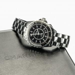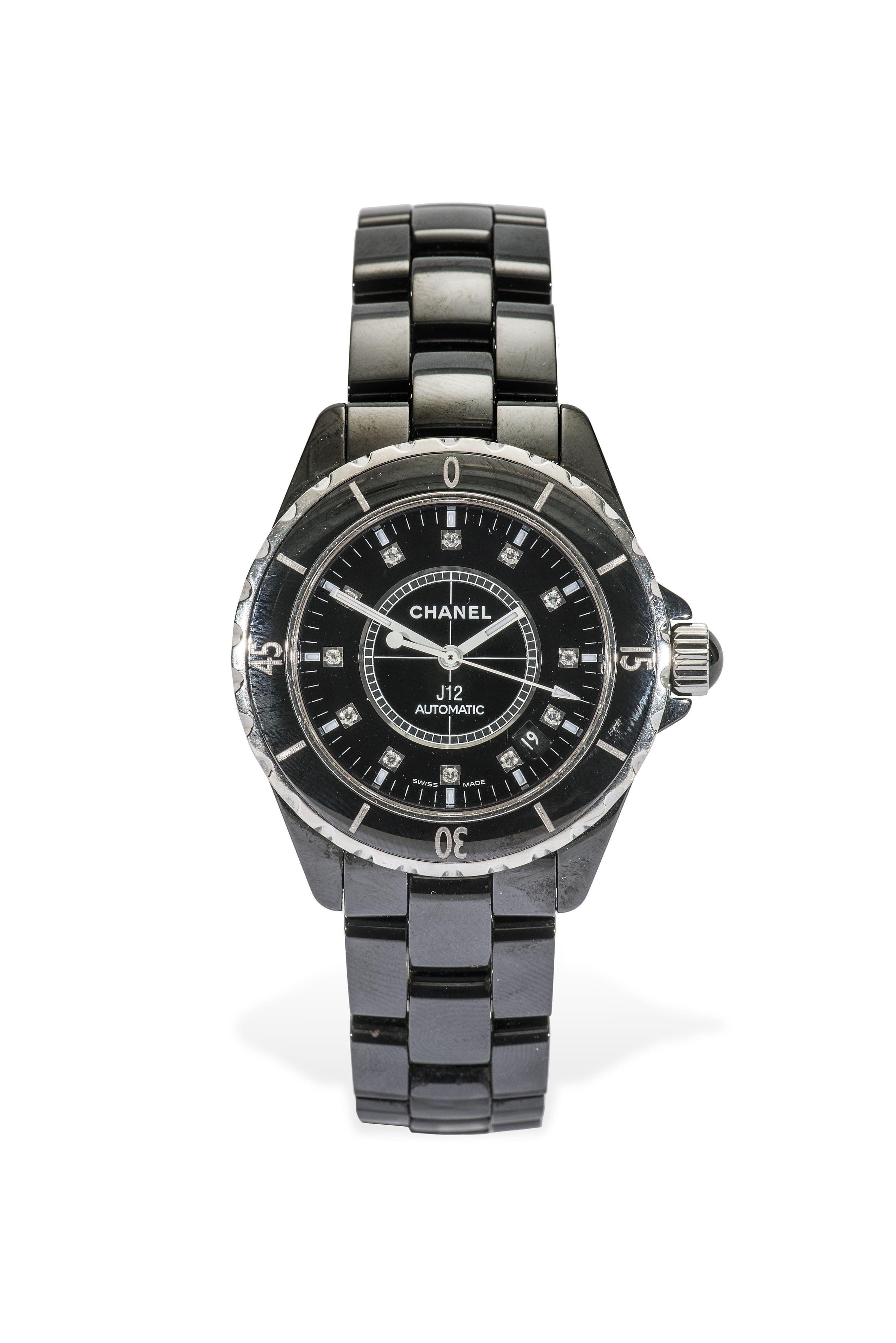 Cadran blanc, chiffres romains noirs, aiguilles bleues, secondes...