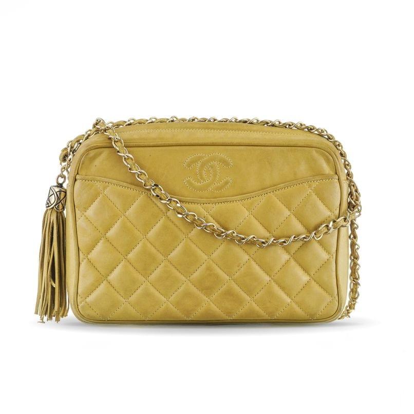 Cuir matelassé blanc, bandoulière en chaîne dorée et cuir blanc,...