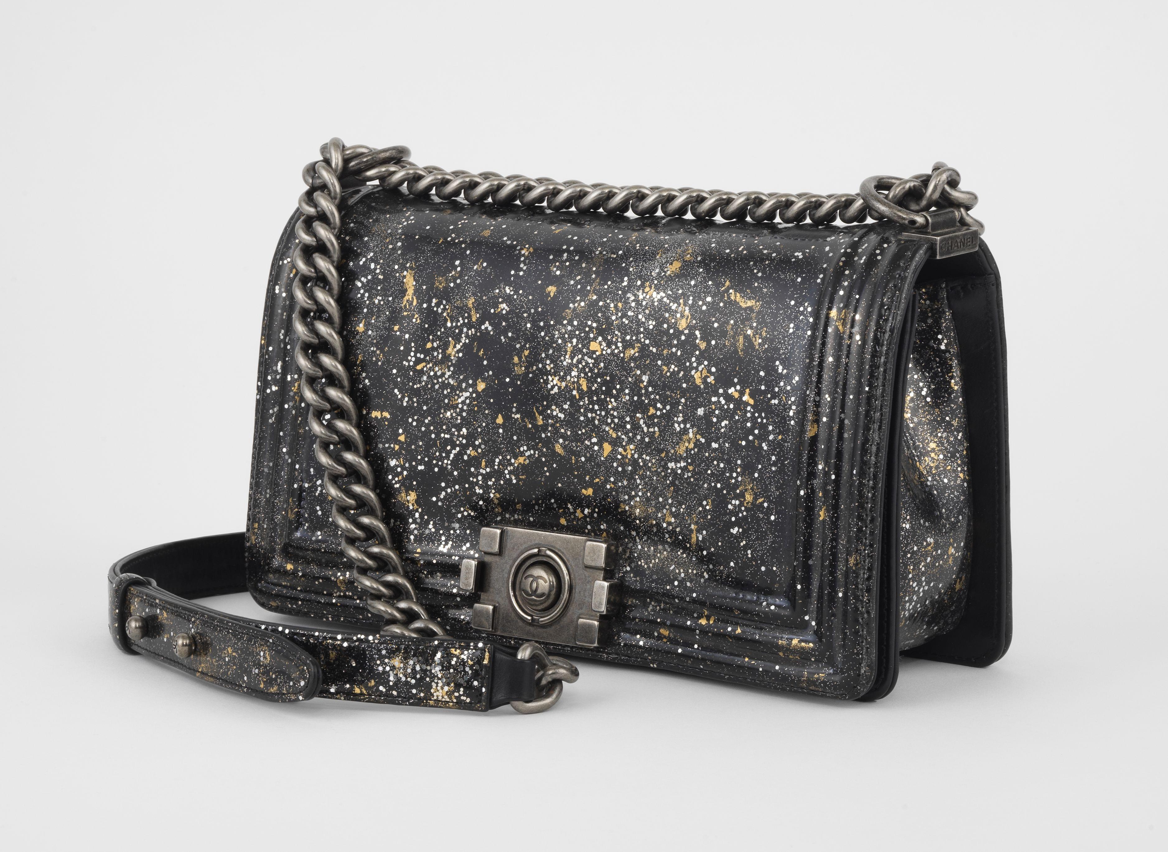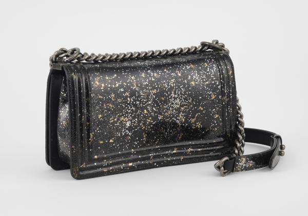 Cuir matelassé noir, doublure intérieure en tissu rouge siglé, d...