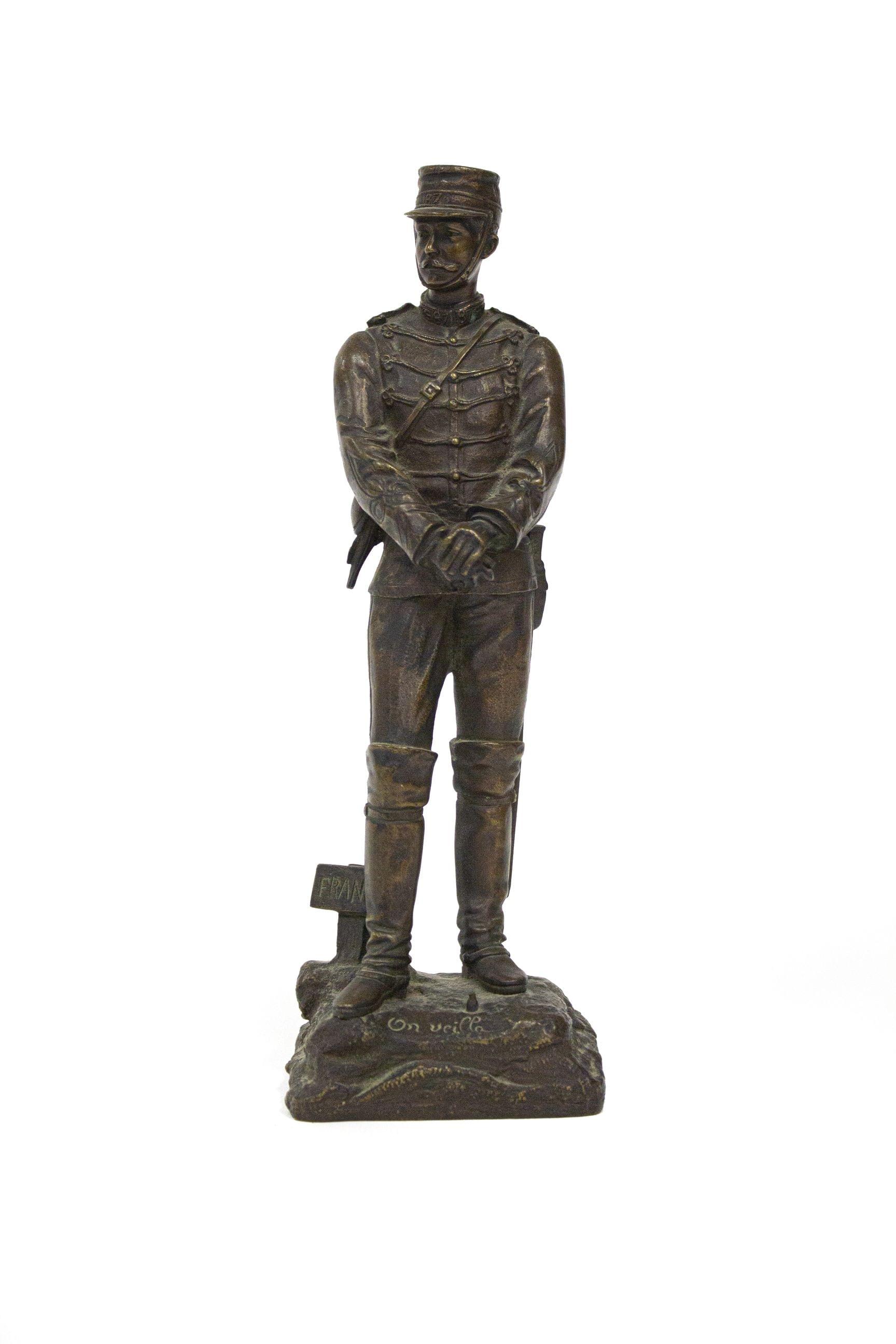 "On veille", bronze à patine brune, H 24 cm